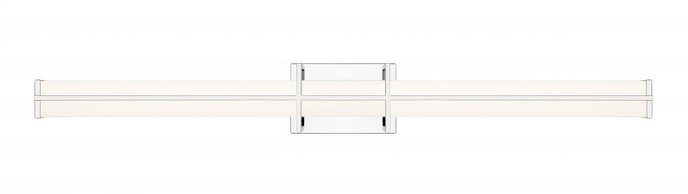 A charming bracket pairs vertical and horizontal elements to create a chic presentation for a modern linear vanity light. Its energy efficient LEDs are dimmable, with selectable color temperature for just the right ambiance. A cool chrome finish completes the framework of this fixture, while a frosted diffuser ensures soft, bright ambient illumination thats ideal for daily grooming and beauty tasks.