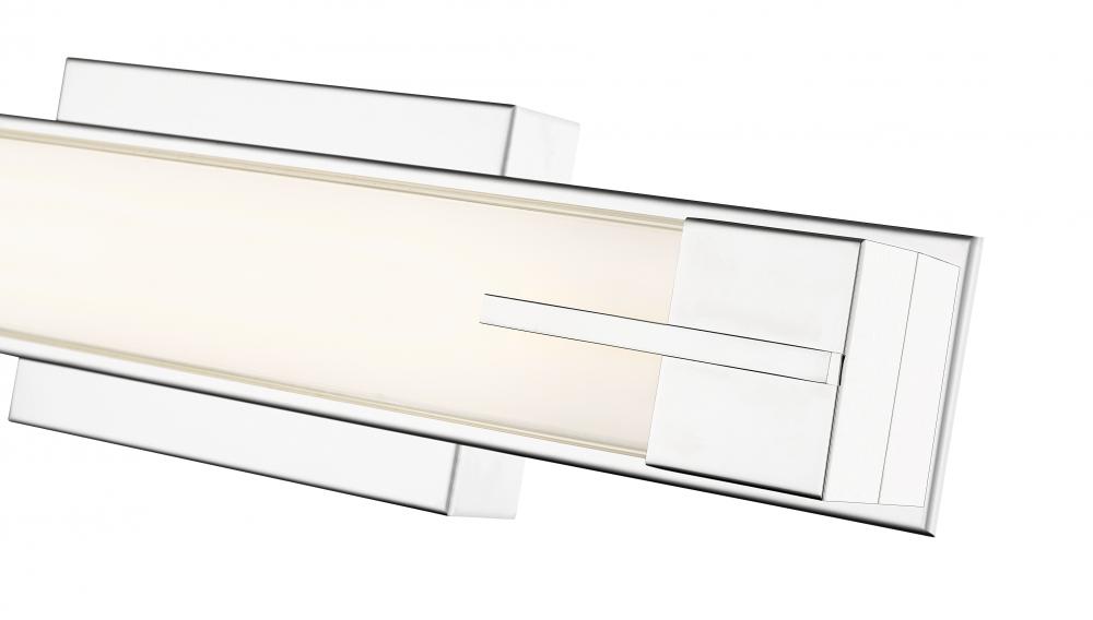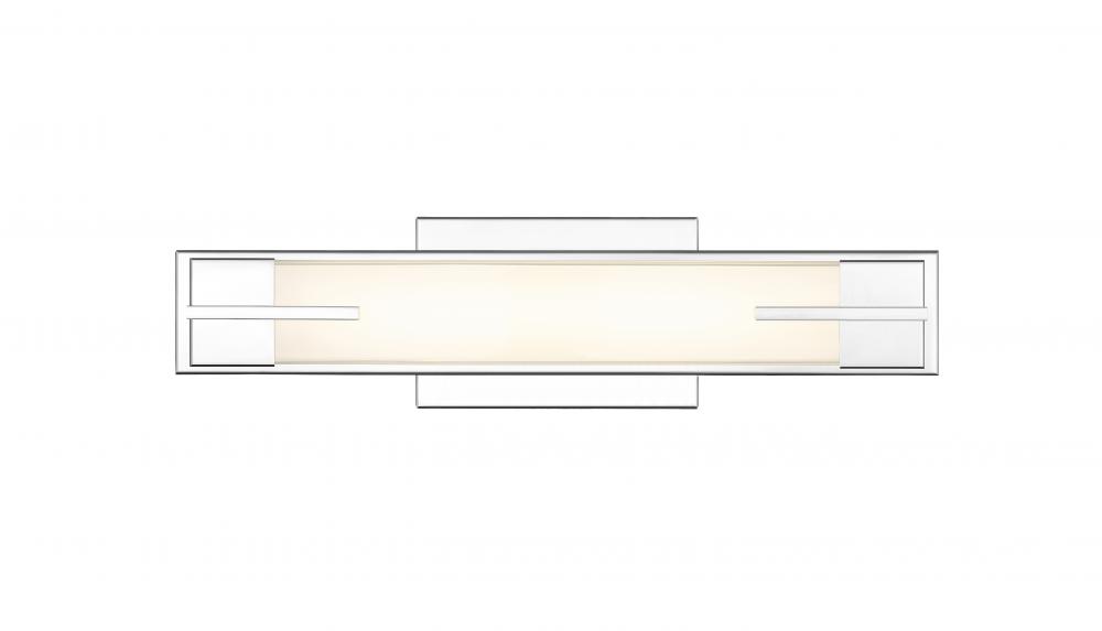 Steel brackets in a gleaming chrome finish add dimension and depth to a modern one-light LED vanity fixture. Its linear silhouette is fresh and refined, with a silk white glass diffuser for bright, even illumination thats perfect for grooming and beauty rituals.