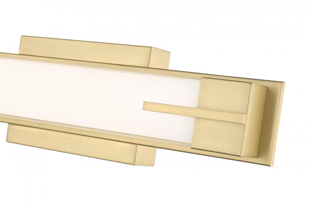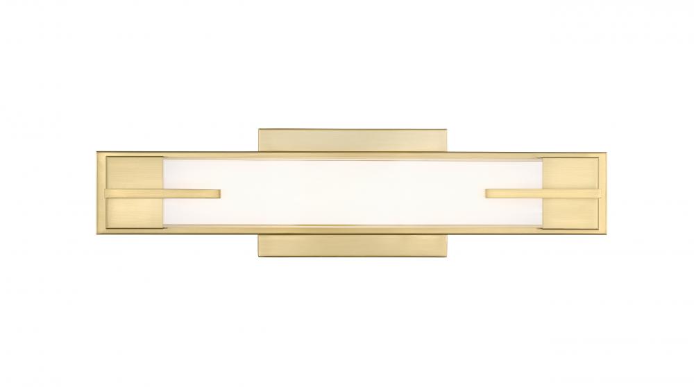 Warm modern gold adds contrasting depth and dimension to a contemporary one-light LED vanity fixture. Striking over your sink and counter, it offers a linear profile complete with bracket details that add a touch of texture and depth. Silk white glass is soft and inviting, ensuring lovely illumination for all your morning and evening ablutions.