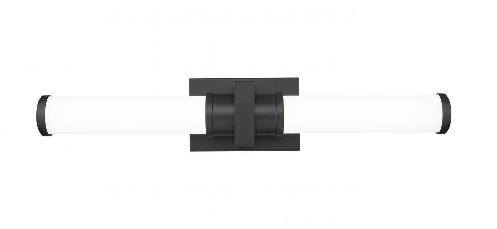 Suited to a contemporary space, this modern LED vanity bath light is the perfect upgrade for a primary or guest suite. It features a chic matte black finish wall plate with a square cuff that adds visual interest to a cylindrical shade silhouette. Opal glass adds contrast while diffusing energy efficient illumination from the fixtures integrated, dimmable LED light source.