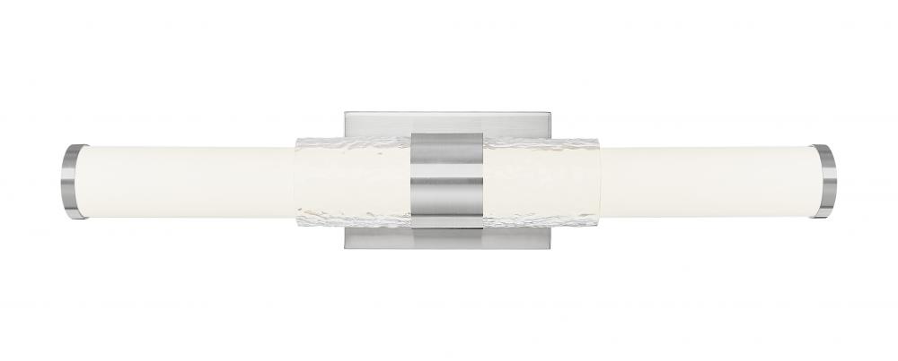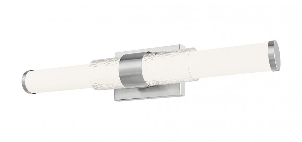 A sleeve of rippling water glass brings feminine flair to the design of the Egon collection. The metal end caps add a finishing touch. Available as a 1-light sconce and 4 different widths to match the size of your vanity. Finished in your choice of Matte