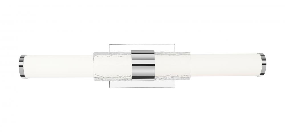 This chrome vanity light gleams with mirror-like brilliance, wrapping softly rippled glass in a high-shine finish that reflects every glimmer. It?s sleek, sculptural, and made to brighten your space with elegance that lasts well beyond the first glance. This is a real standout piece that sparkles with style.