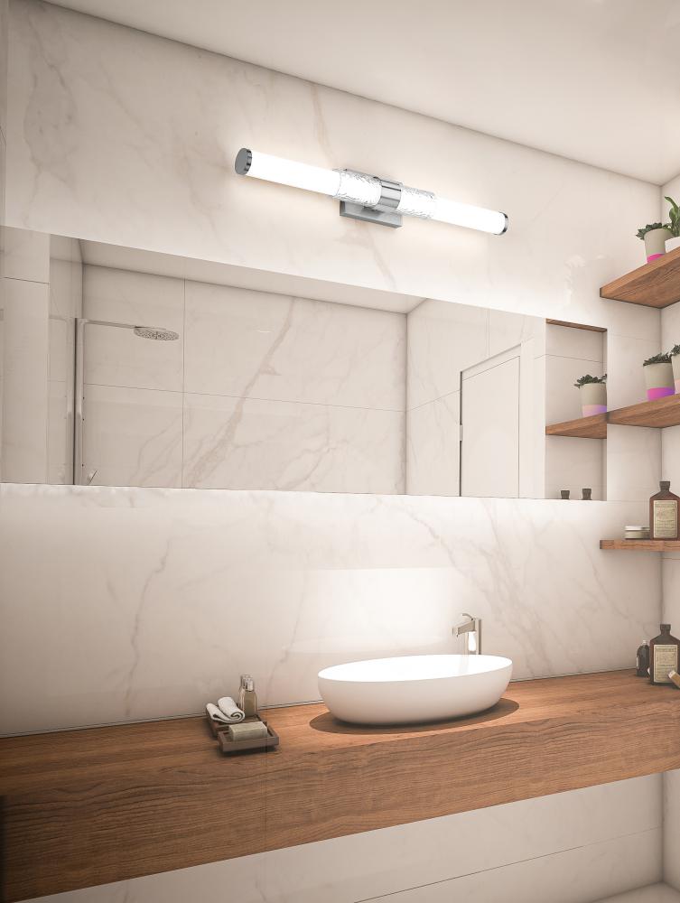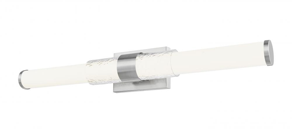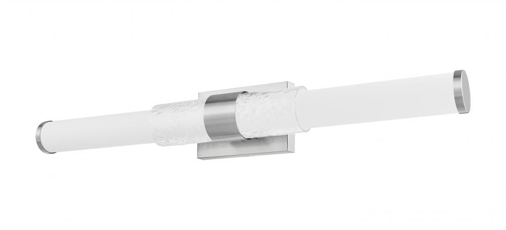 Cool brushed nickel gives this elongated vanity light its crisp, modern edge, while the wave-textured glass keeps the glow soft and inviting. It?s a seamless blend of structure and softness, made to elevate vanities with quiet confidence. Subtle luxury, perfectly proportioned.