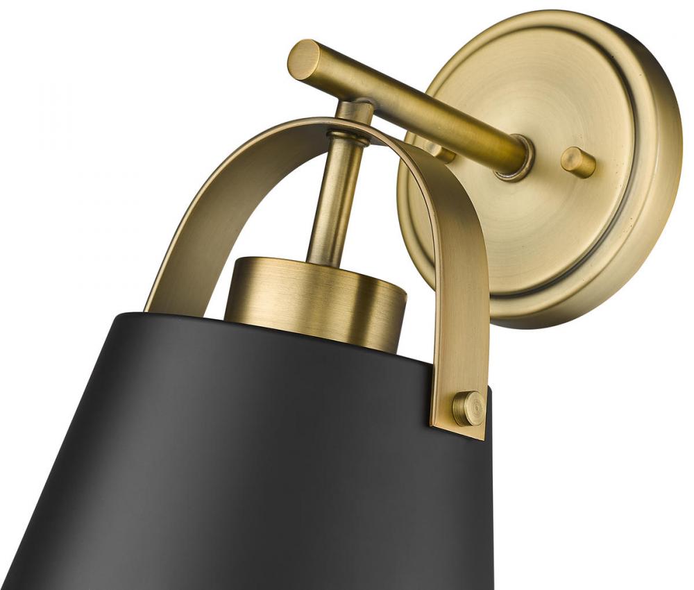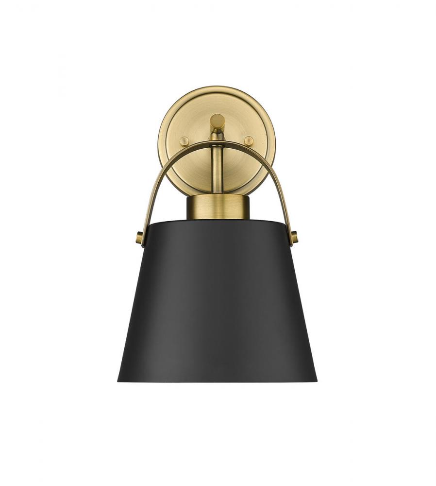 Choose sophistication to bring uplifting elegance in a casual space, adding this single-light wall sconce from the Z-Studio collection. Its tasteful farmhouse industrial design features a conical matte black finish steel shade with heritage brass steel accents. Fresh styling contributes to a striking look as it delivers ambient lighting to hallways, bath spaces, and main living areas.