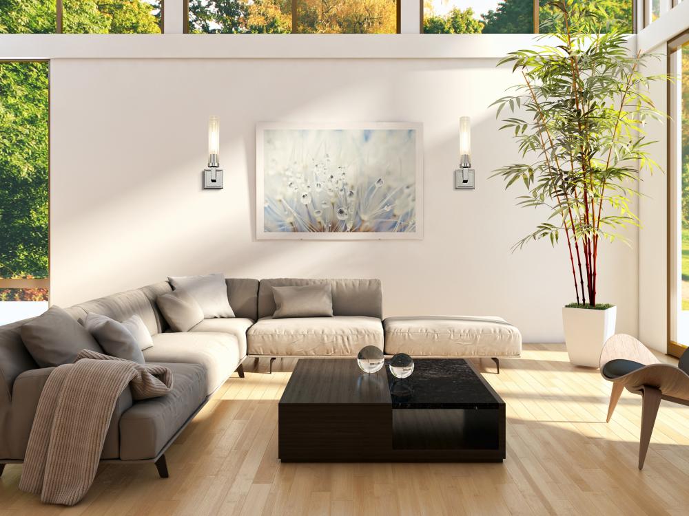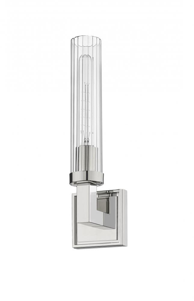 Round out a design scheme with this sophisticated entry in accent lighting, created with clean lines and a lovely finish. The Beau sconce offers a linear silhouette with a tall tubular fluted glass shade mounted to a minimalist frame fashioned of gleaming polished nickel finish steel. Add a hint of upscale flavor to a contemporary hallway, bath space, or bedroom.