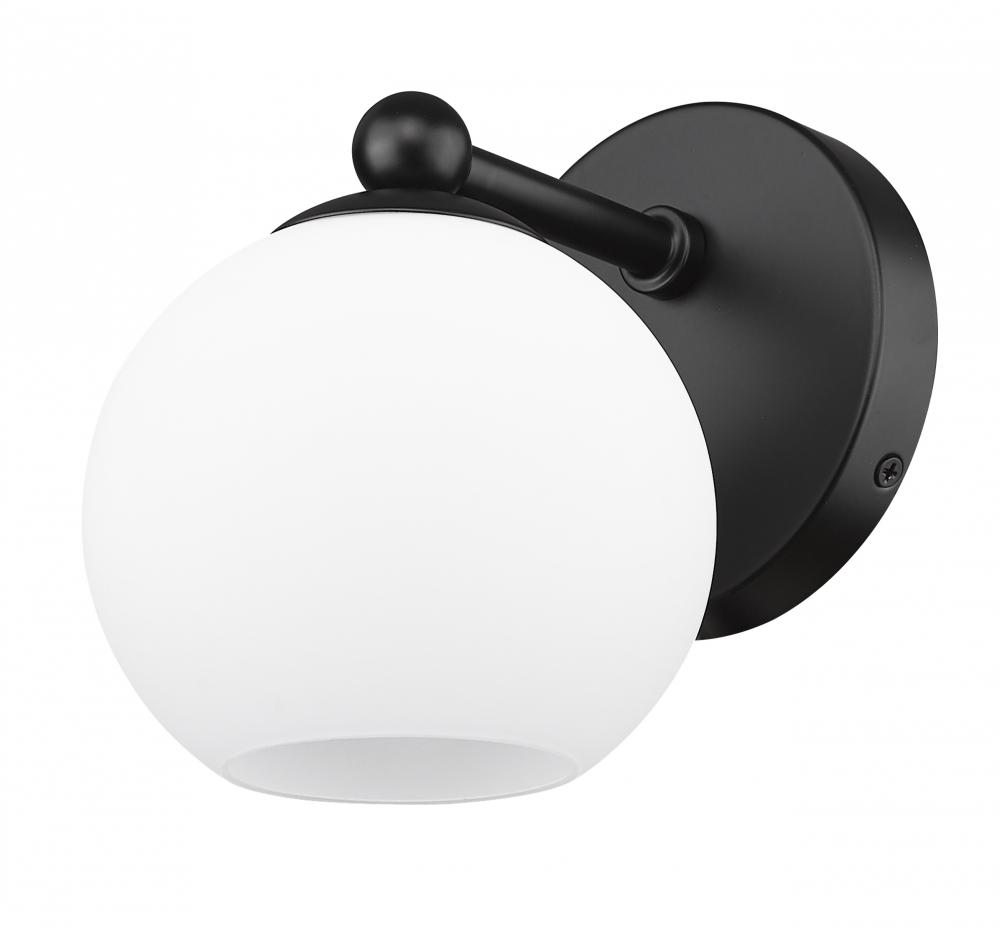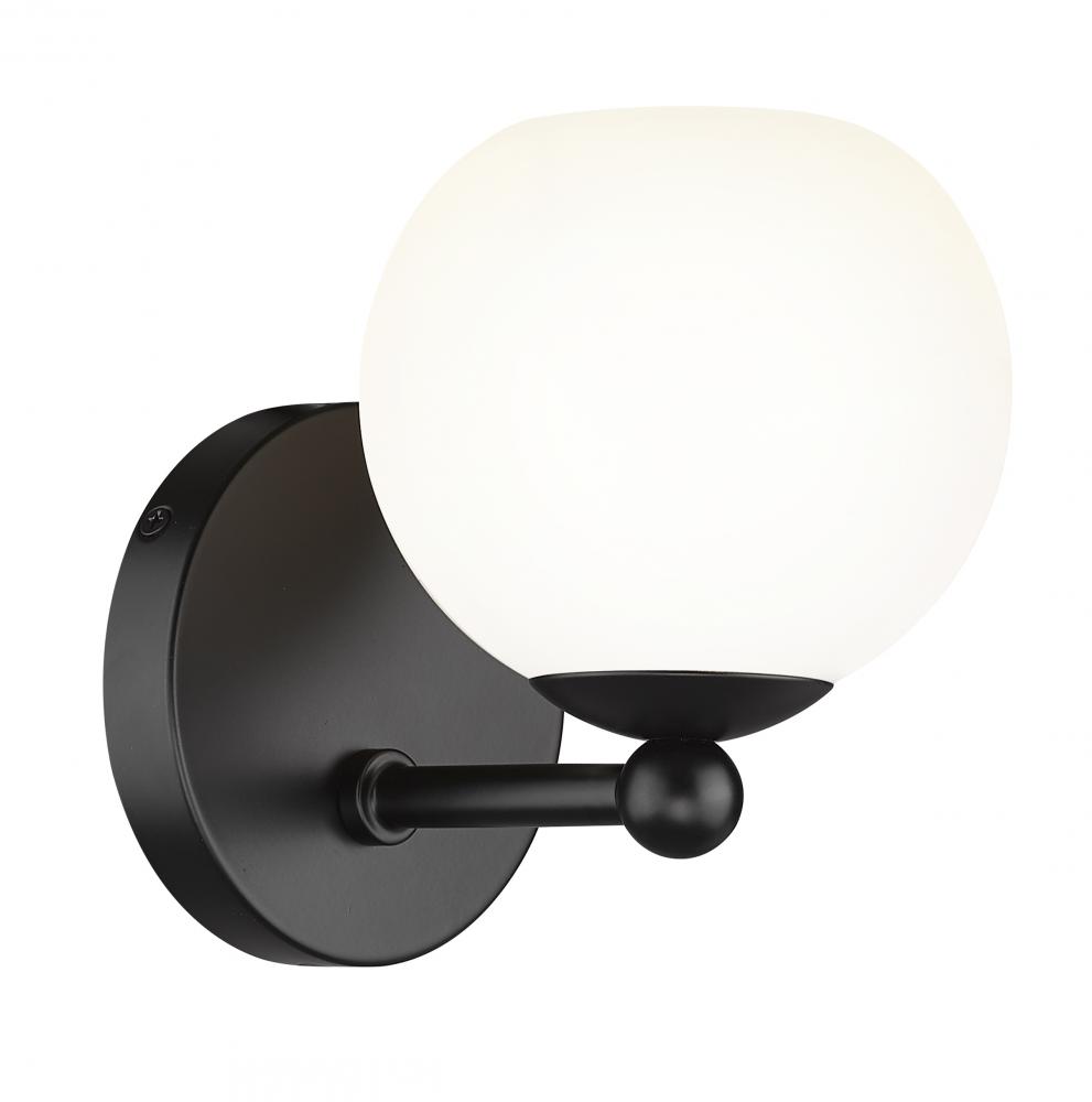 An easy elegance celebrates the iconic mix of glass and metal as this wall sconce from the Neoma collection adds both palette contrast and an updated aesthetic. Perfect for a contemporary bath space, hallway, or main living area, this sconce features a delicate opal glass open orb shade affixed to a charming wall mount and accents in dynamic matte black finish steel. A minimalist design perks up to embellish interior d?cor when this wall light ties together all elements in a modern setting.