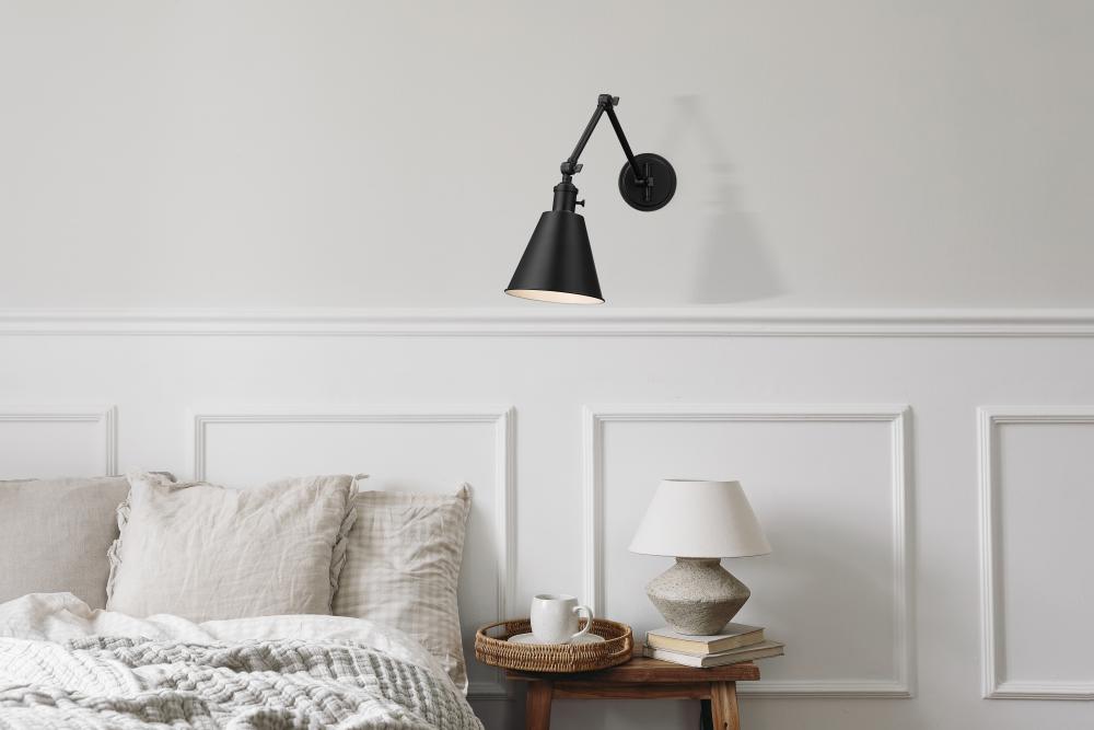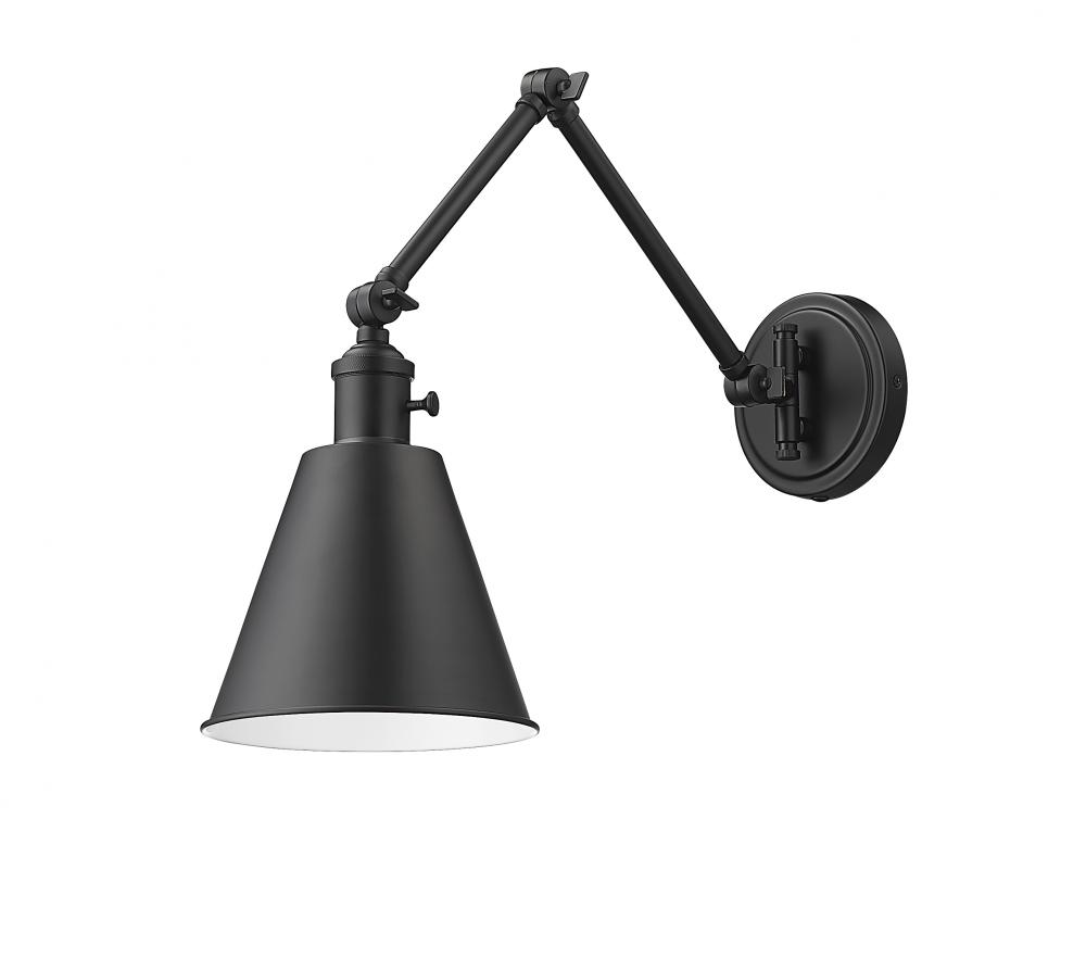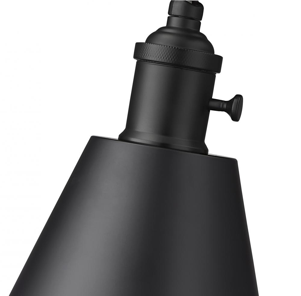 Mixed motifs offer an exquisite form of industrial style in a one-light wall sconce offering the perfect blend of glam and industrial design aesthetics. Constructed of bold matte black steel framing and a matching steel conical shade, it delivers utility in an adjustable configuration making it easy to achieve customizable lighting levels.Install through hard-wiring or install cord-and-plug mounting to allow movement from space to space.