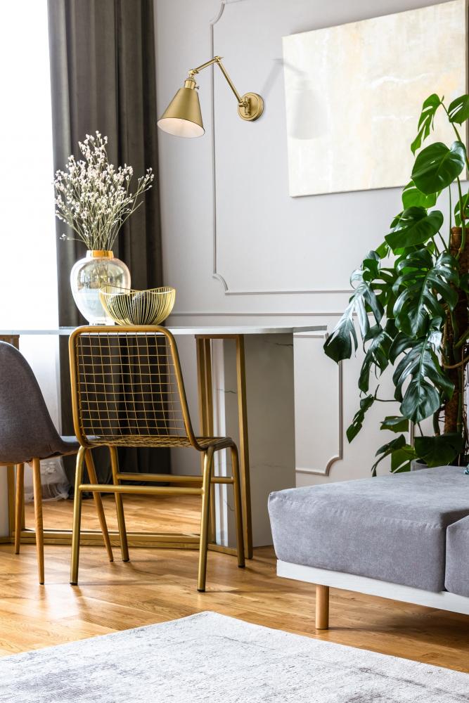 Mixed motifs offer an exquisite form of industrial style in a one-light wall sconce offering the perfect blend of glam and industrial design aesthetics. Constructed of chic modern gold steel framing and a matching steel conical shade, it delivers utility in an adjustable configuration making it easy to achieve customizable lighting levels. Install through hard-wiring or install cord-and-plug mounting to allow movement from space to space.