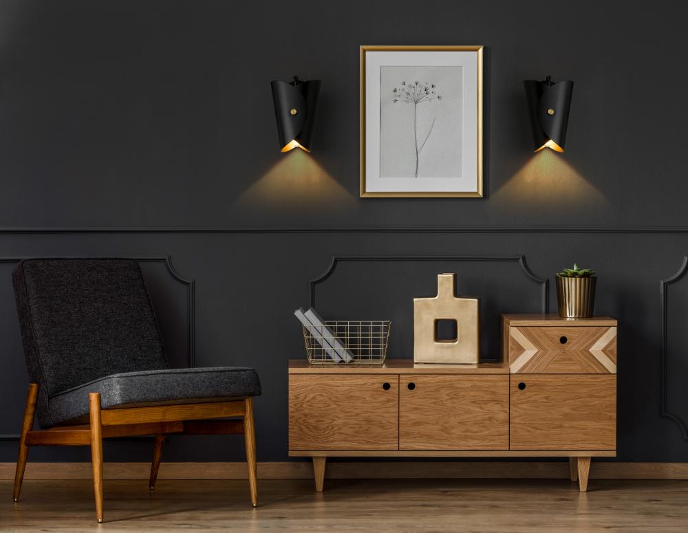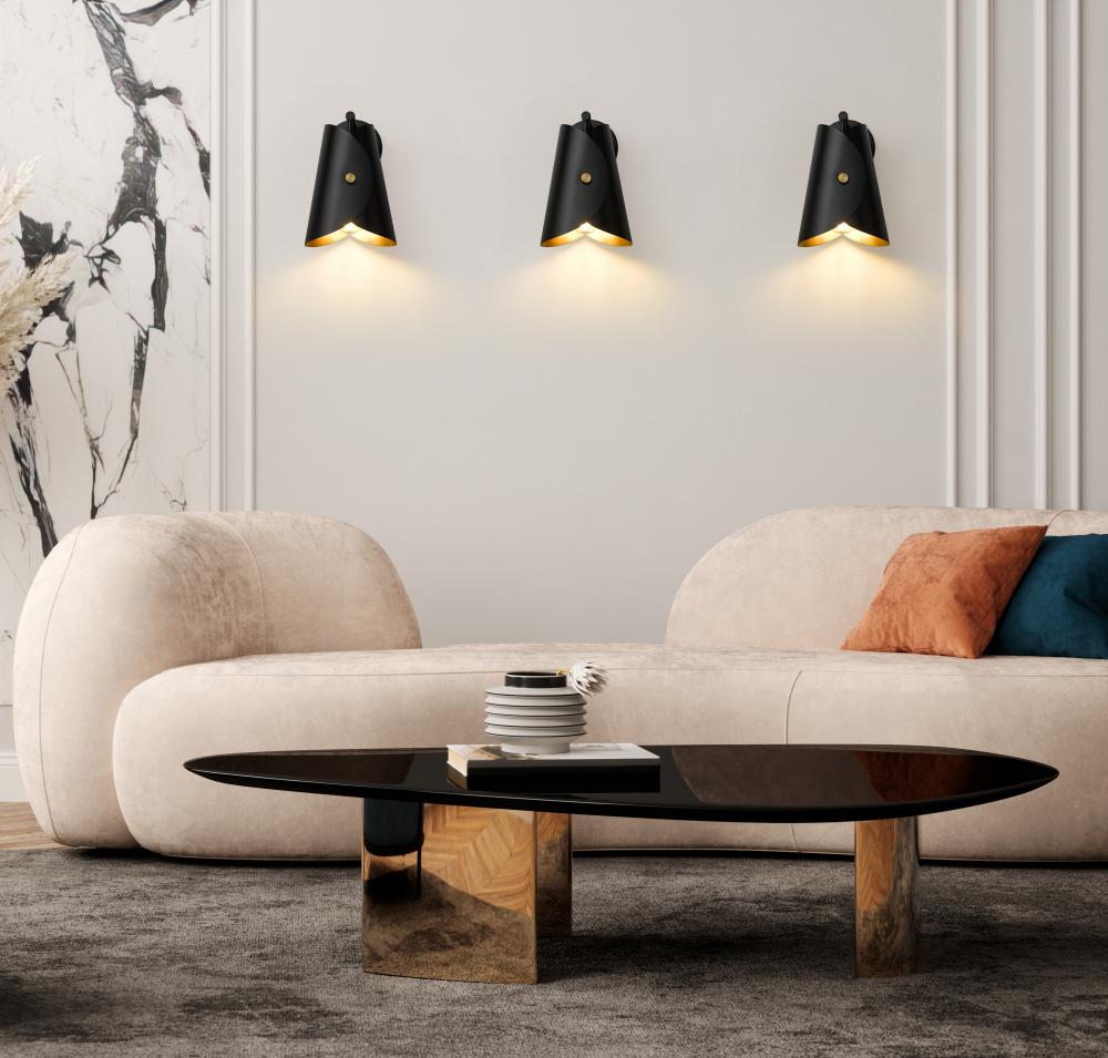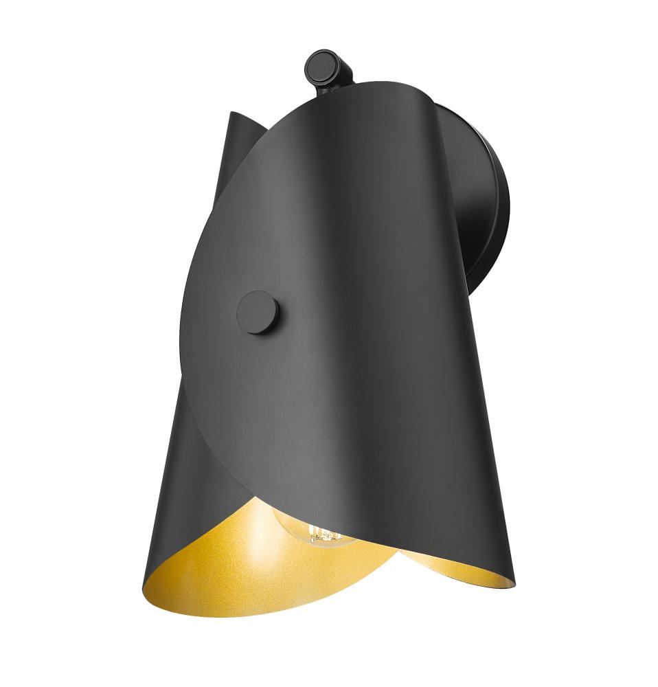 Buttoned up elegance is the name of the game for this modern one-light wall sconce. Its wrapped detail adds infinite charm and character, while the ability to install with the light pointing up or down creates modern flexibility for your space. A matte black finish and gold interior adds the perfect dose of contrast and warm sophistication in your space.