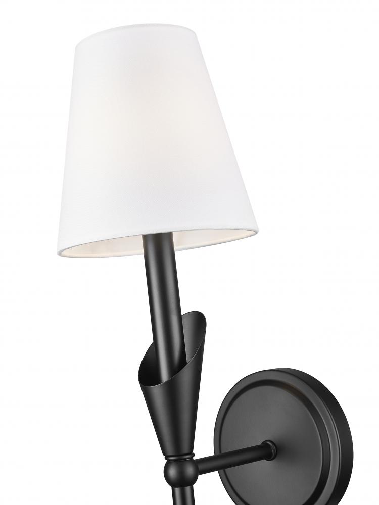 Inspired by the fluid grace of a calla lily, this wall sconce captures movement and elegance in a single, sweeping gesture. Its slender matte black arm curves gently beneath a white fabric shade, adding softness to its modern form. Perfect for bedrooms, hallways, or cozy reading corners, it delivers a timeless touch with a contemporary edge.