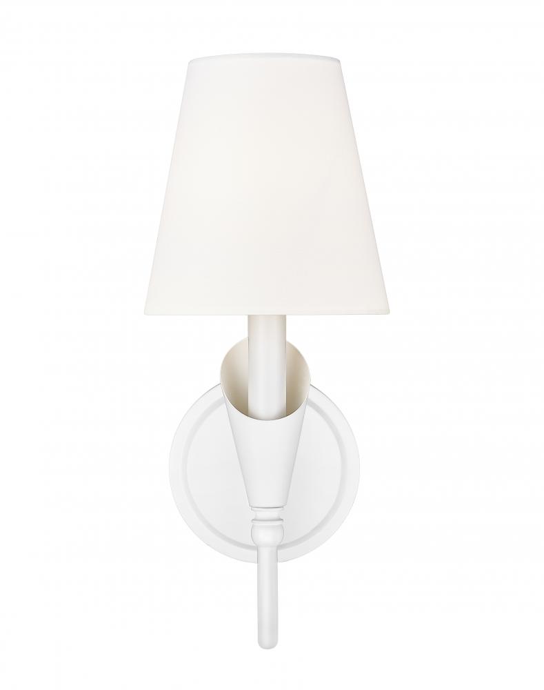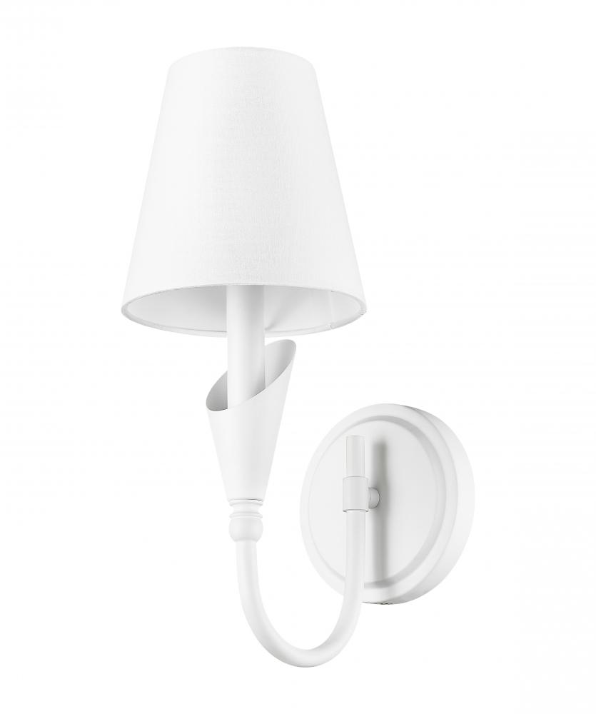 Soft to the eye and elegant in motion, this sconce delivers beauty in the smallest of forms. The textured white arm flows upward with quiet grace, cradling a white fabric shade that casts a gentle, flattering glow. It is a natural fit for light-filled interiors, coastal palettes, or romantic corners.