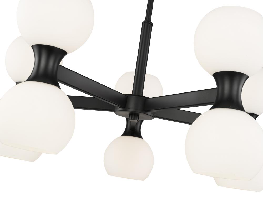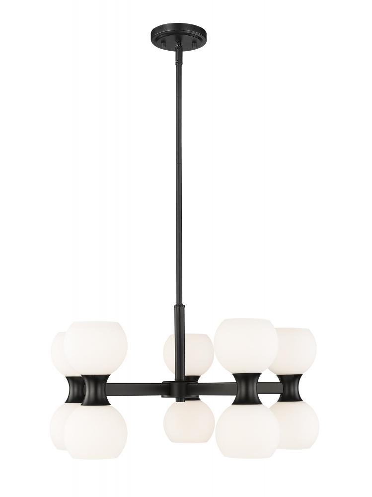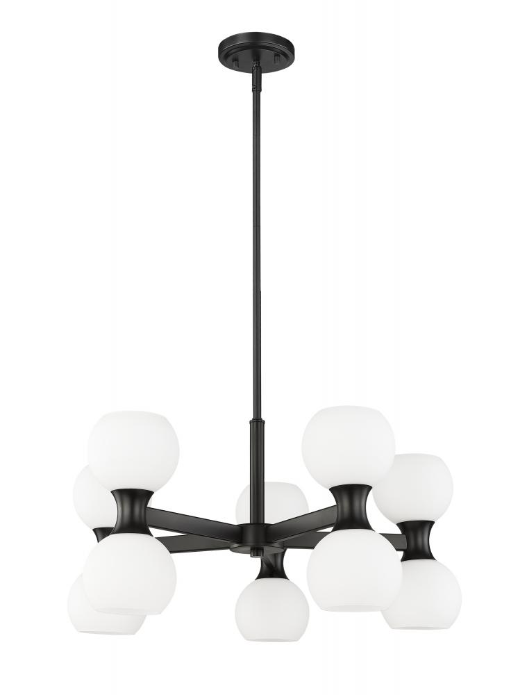 Introduce a focal point to a custom space in the form of a light fixture with pizzazz. From the Artemis collection comes a 10-light chandelier that repackages the storied Mid-Century Modern motif into a statement-making source of lighting in a dining room, living space, or entryway. Embrace a stylish matte black finish linear frame supporting artful opal glass globe shades and deliver a focal point perfect for an expressive setting.