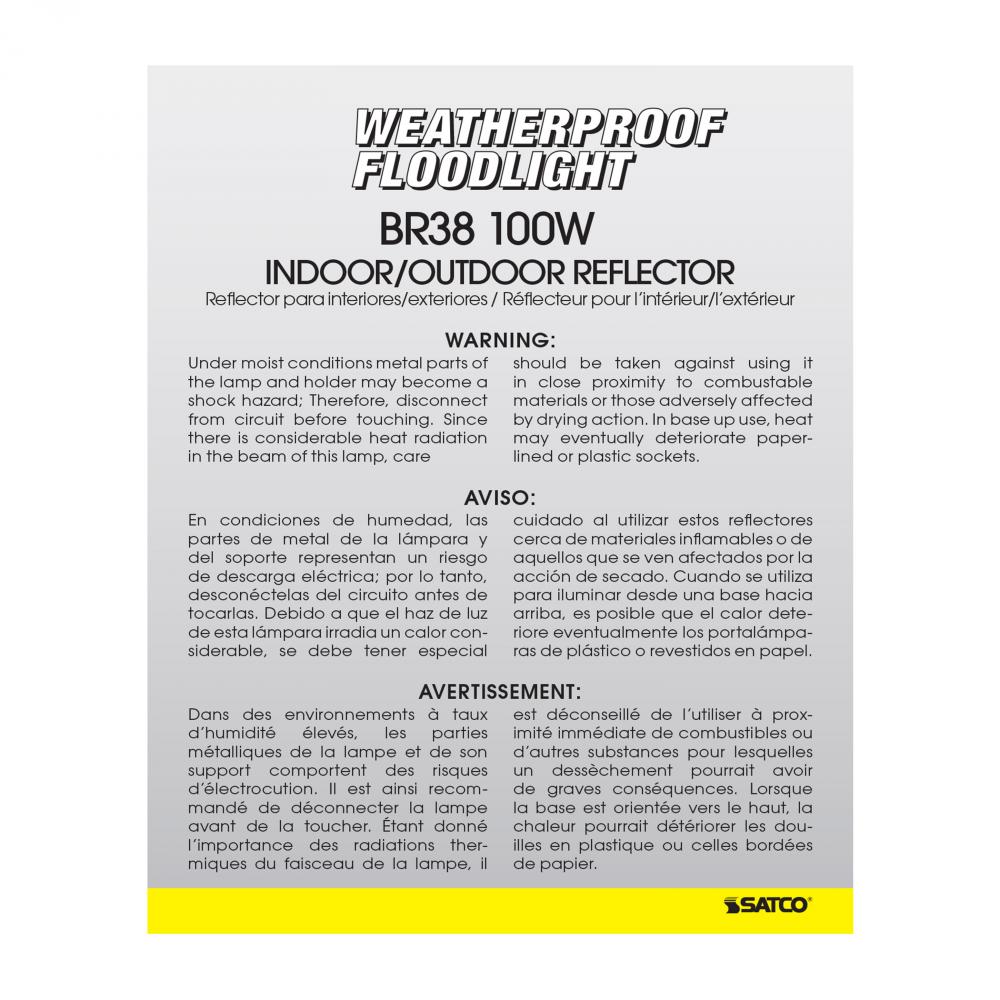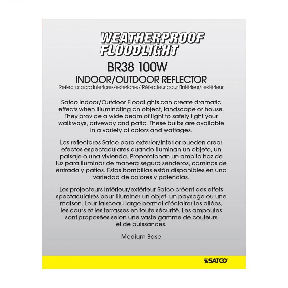 100 Watt BR38 Incandescent; Amber; 2000 Average rated hours; Medium base; 120 Volt