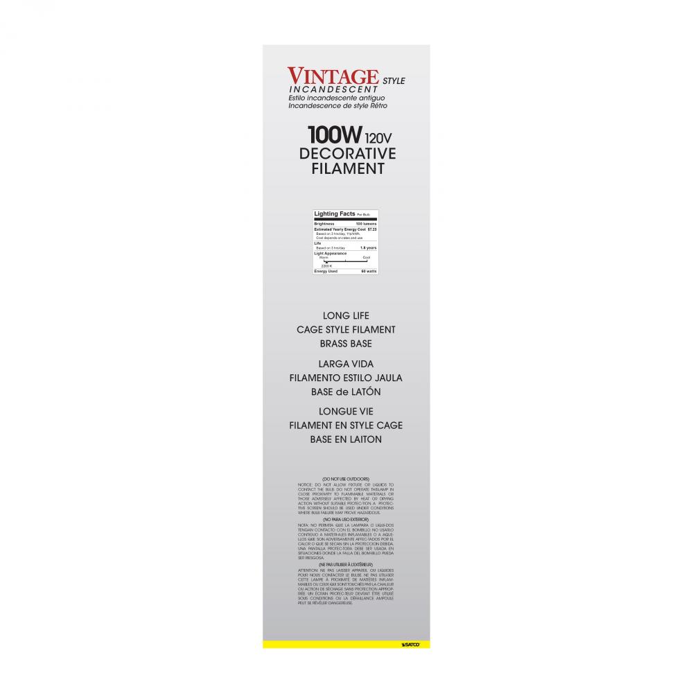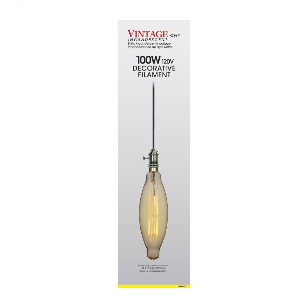 100 Watt BT38 Incandescent vintage style; Amber; 2000 Average rated hours; Medium Base; 120 Volt