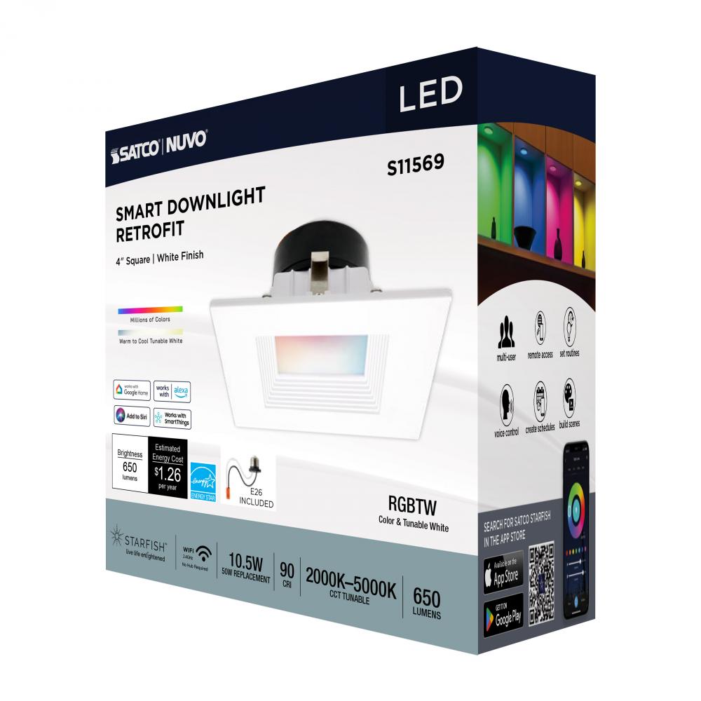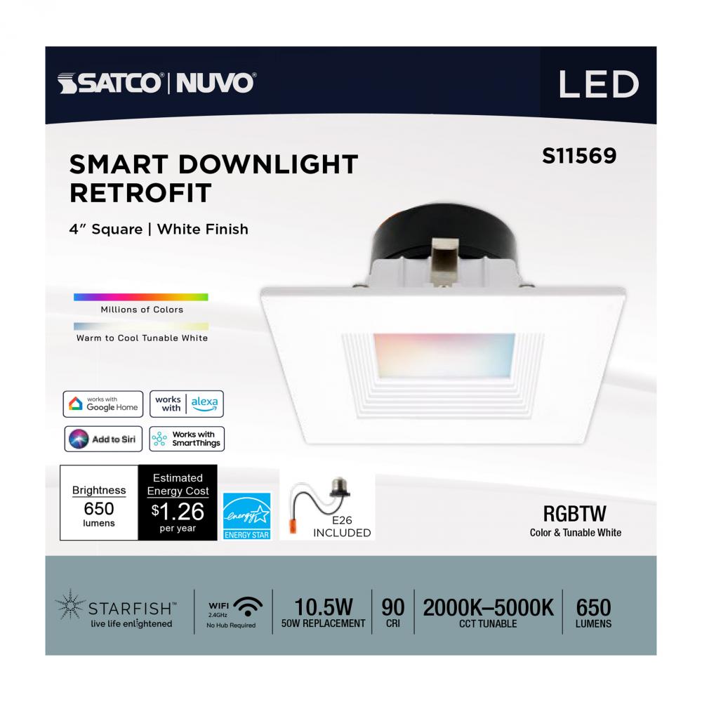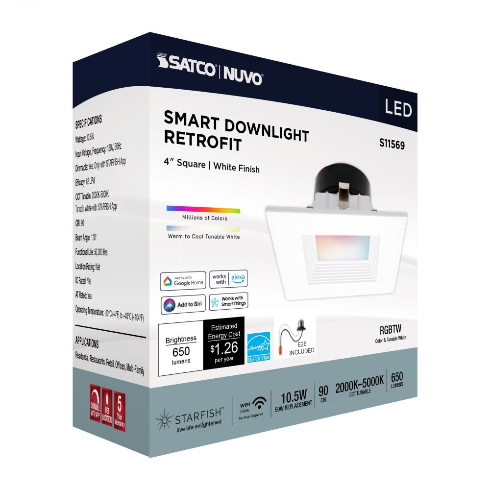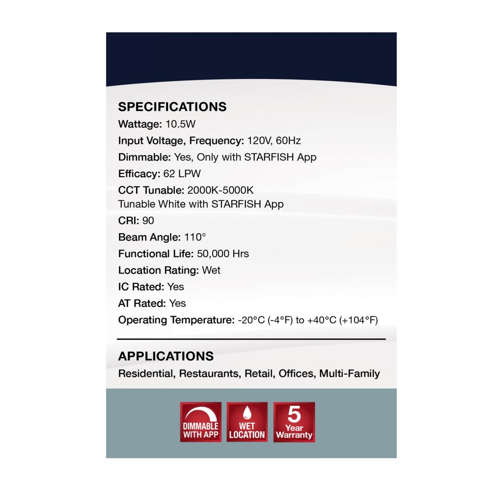 SATCO NUVO's S11569 LED Retrofit Downlight with STARFISH technology is the ultimate choice for smart lighting and ambiance control. Download the STARFISH app to customize any tunable white color temperatures from 2000K warm white to 5000K natural light