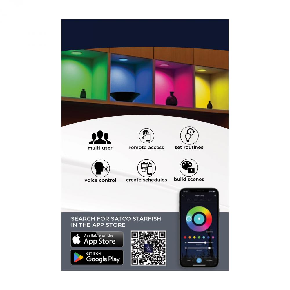SATCO NUVO's LED Retrofit Downlights with STARFISH technology are the ultimate choice for smart lighting and ambiance control. Download the STARFISH app to customize any tunable white color temperatures from 2000K warm white to 5000K natural light, or