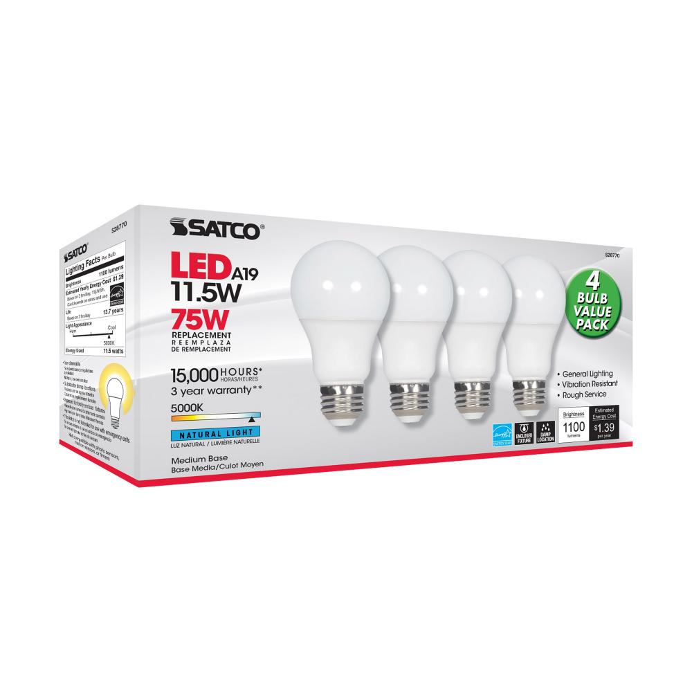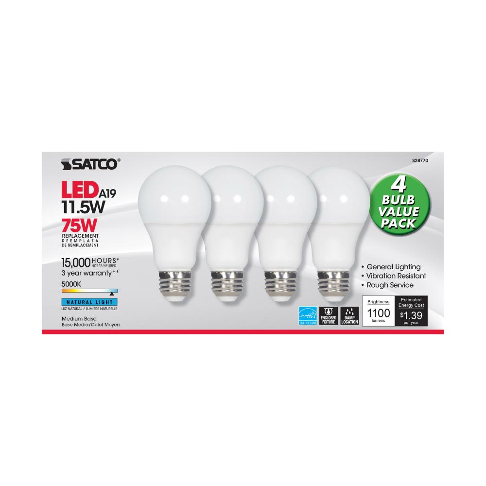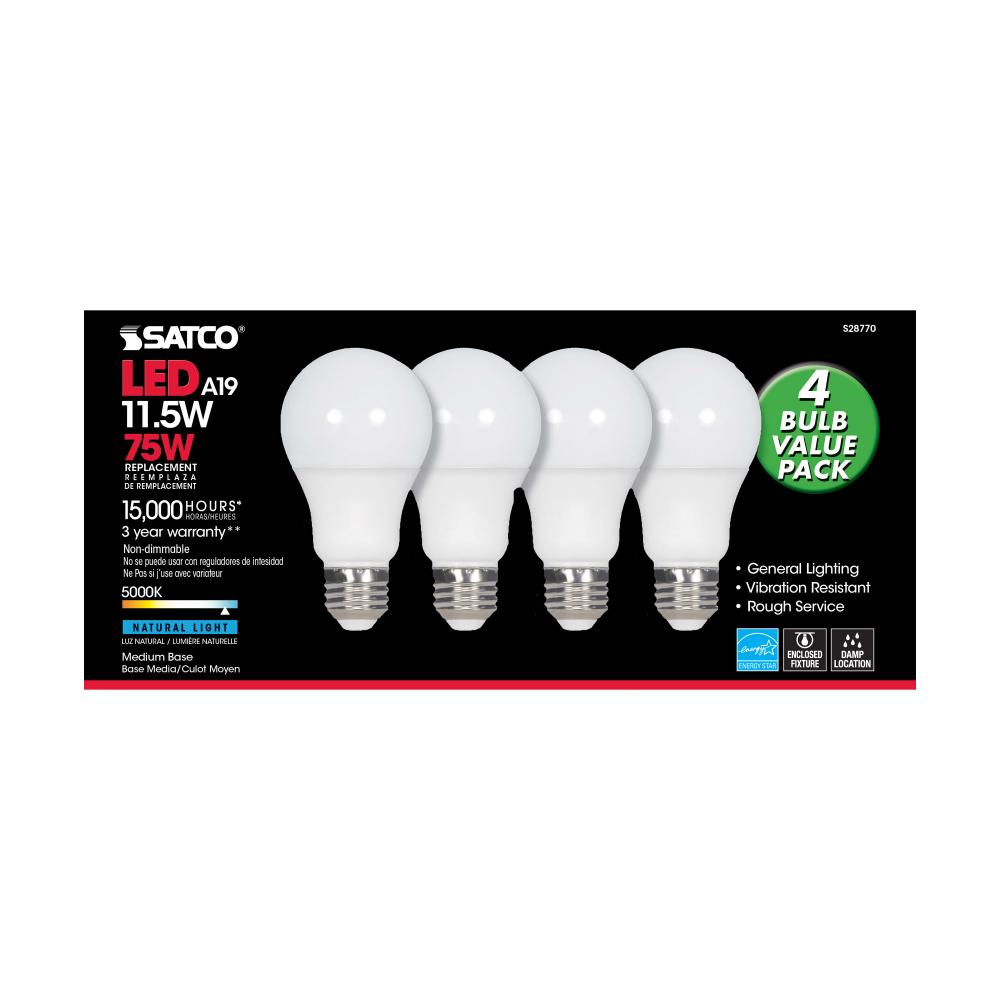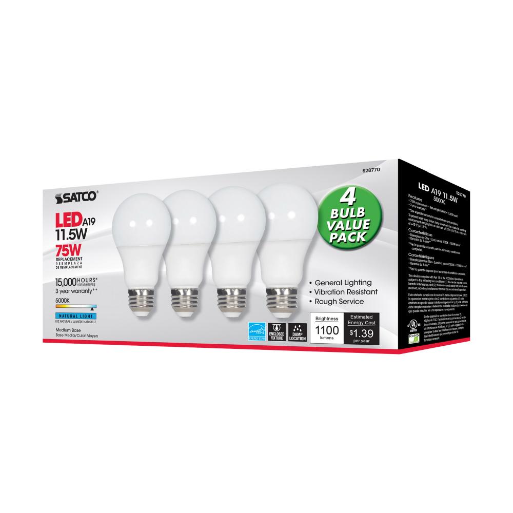 11.5 Watt; A19 LED; 5000K; Medium base; 220 deg. Beam Angle;120 Volt; 4-pack
