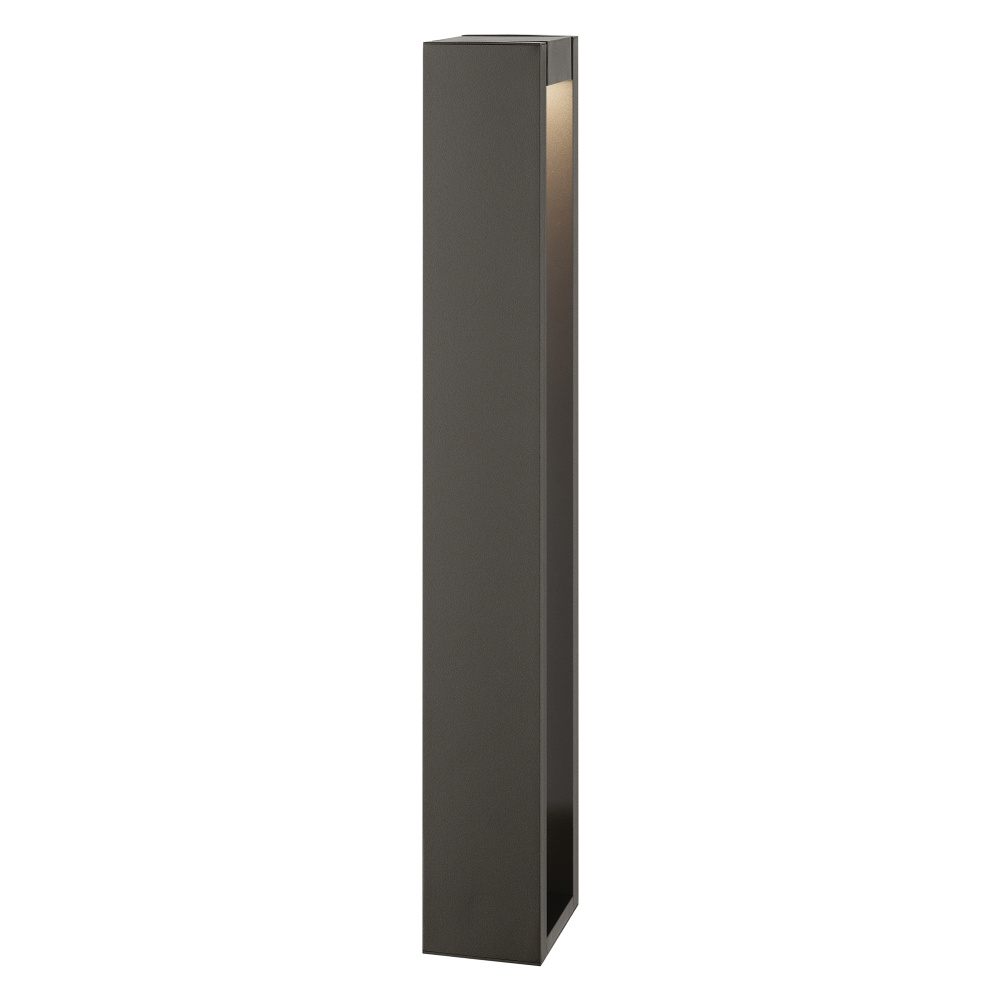 Illuminate outdoor spaces with the 12 Volt LED 25.4" Aimed Bollard in Textured Architectural Bronze. This stylish path light offers a 2700K integrated LED light source, delivering a warm white light to a path or walkway. The innovative design allows the linear, cube-shaped top to tilt up to 45 degrees forward or backward, giving you precise control over where the light shines. Crafted to withstand the elements, the light's electrical components are fully sealed under a polycarbonate lens and its solid aluminum construction offers a robust stake-to-stem connection. The clean, modern lines of this bollard light effortlessly complement a wide range of exterior styles, making it a versatile addition to any outdoor setting.