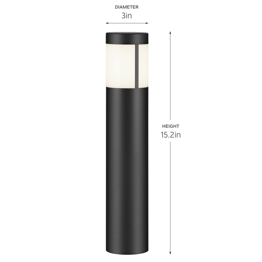 Illuminate outdoor spaces with the 12 Volt LED 15.2" short Round Bollard in Textured Black. Designed to take on the elements of the outdoors, the Round Bollard offers a 3000K integrated LED light source that, delivers a pure white light to sidewalks, stone pathways and walkways. Its form meets function with electrical components that are fully sealed using a ribbed gasket which provides an even, watertight seal to the lens. It also features a streamlined, clean modern design to coordinate with a wide variety of exterior home styles.