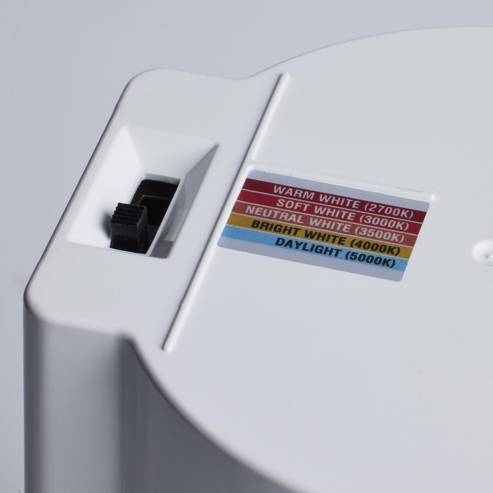 Satco's 12 watt commercial LED downlight offers versatility and functionality in commercial applications. The round fixture in white finish is a practical solution for energy efficient lighting. This dimmable, recessed downlight is CCT selectable, offe