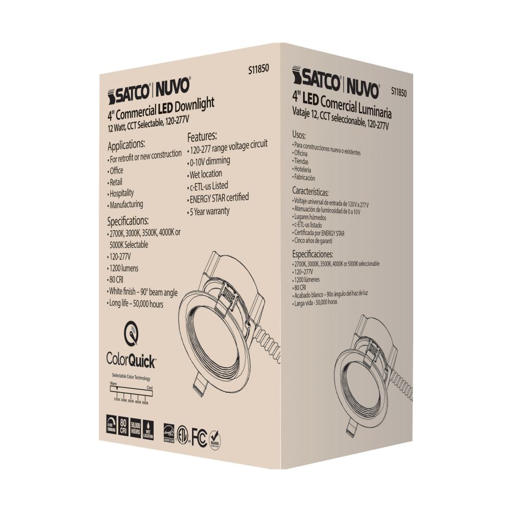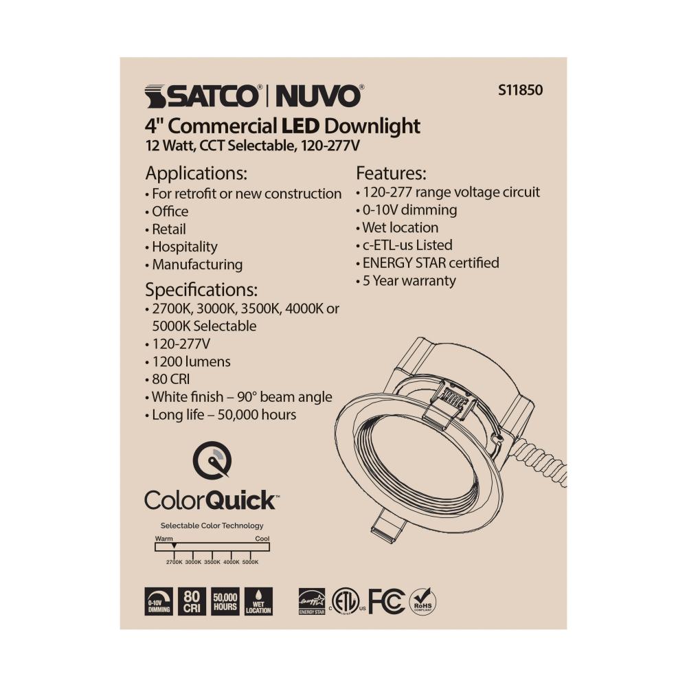 Satco's S11850 12 watt commercial LED downlight offers versatility and functionality in commercial applications. The round fixture in white finish is a practical solution for energy efficient lighting. This dimmable, recessed downlight is CCT selectabl