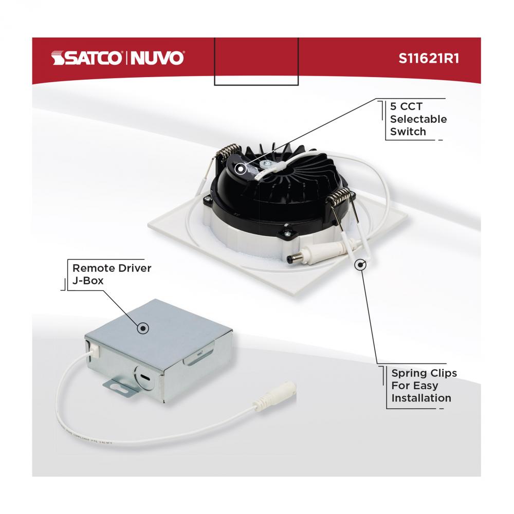 12 Watt LED Direct Wire Downlight; Gimbaled; 4 Inch; CCT Selectable; Square; Remote Driver; White Finish; 850 Lumens; 120 Volt