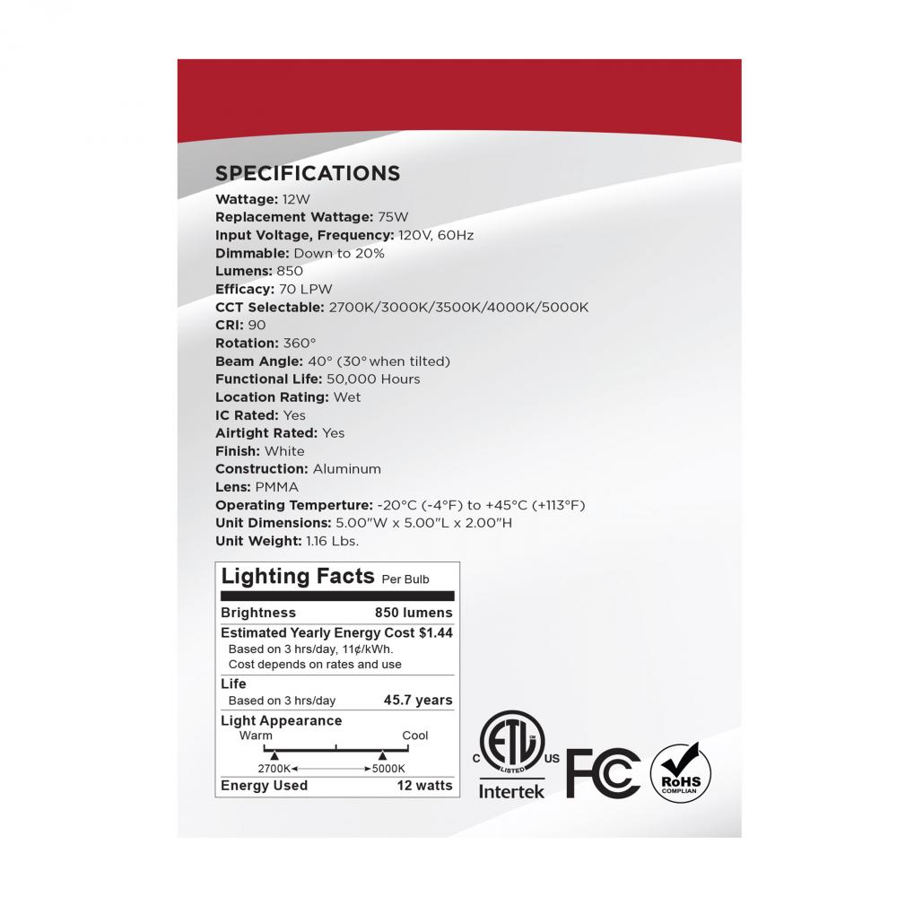 12W/DW/GBL/4/CCT/SQ/RD/WH