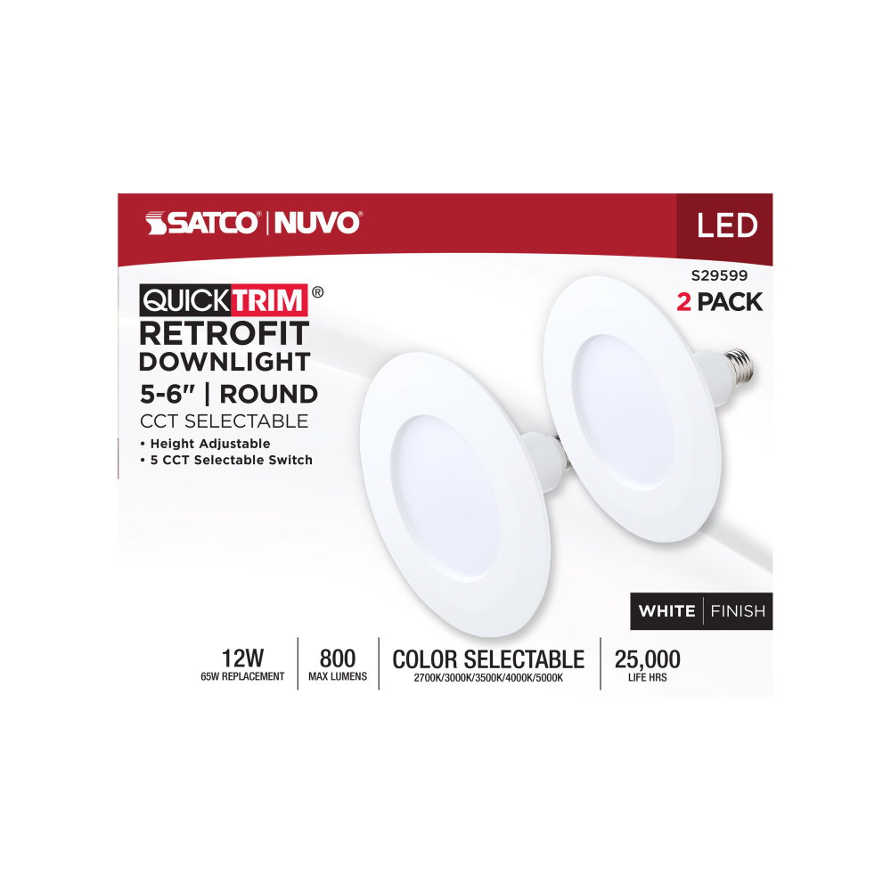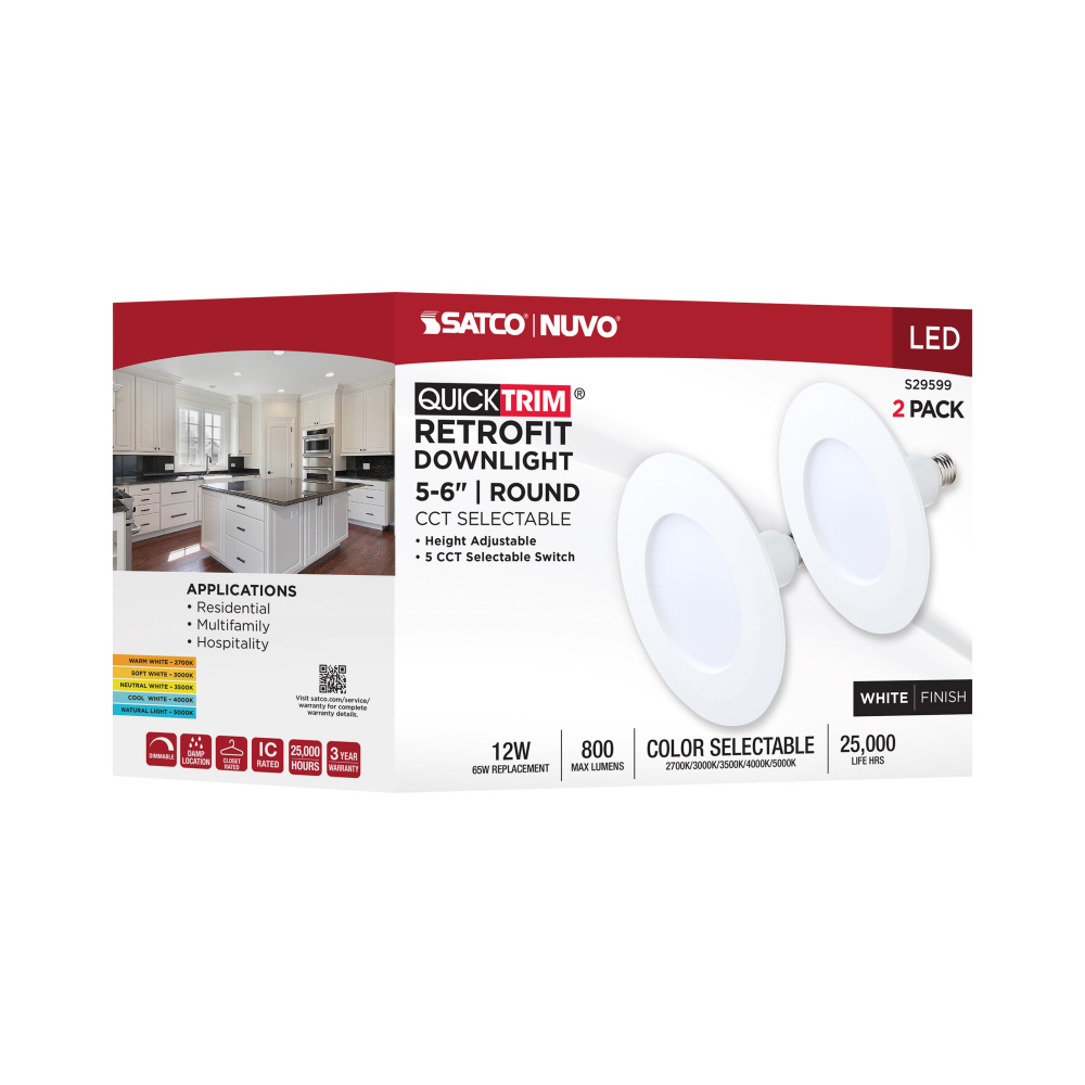 Designed as a direct replacement for traditional cans and reflector lamps, SATCO NUVO's S29599 5"/6" LED QuickTrim Downlights are the easiest solution to upgrade downlighting on the market. The adjustable neck adapts to a variety of legacy rece