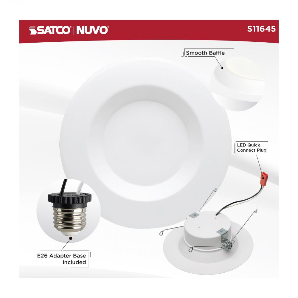 Elevate your lighting with SATCO NUVO's LED Retrofit Downlights, designed with impeccable color rendering. These retrofits include an E26 adapter making them the perfect upgrade to replace existing screw base lamps in downlight applications. Featuring