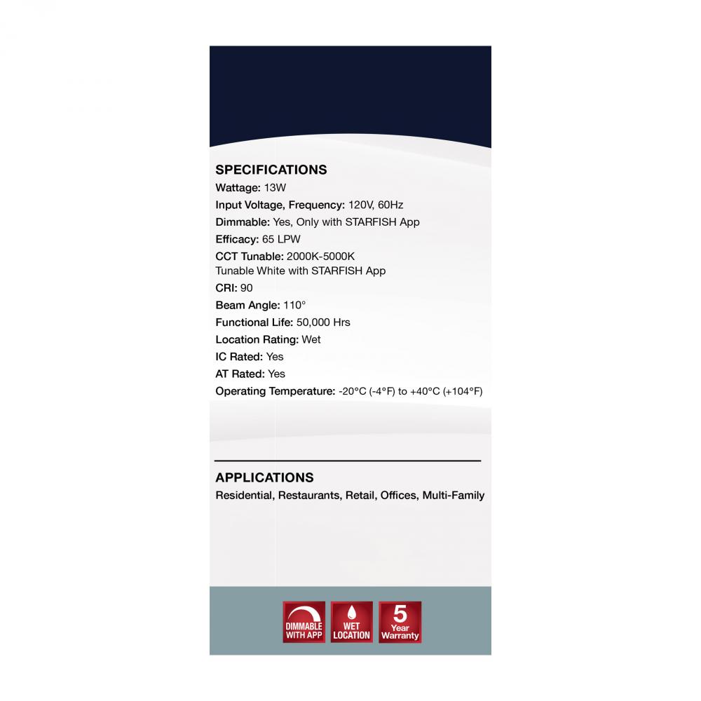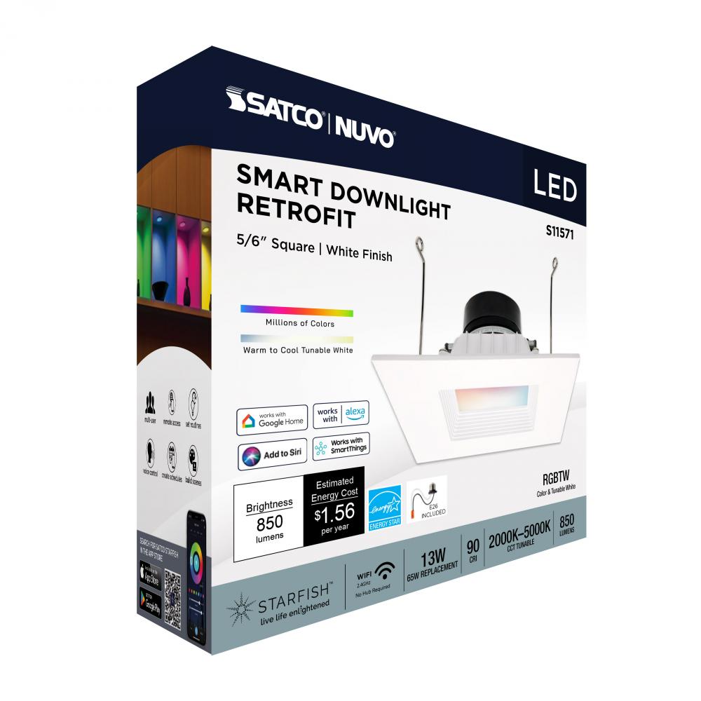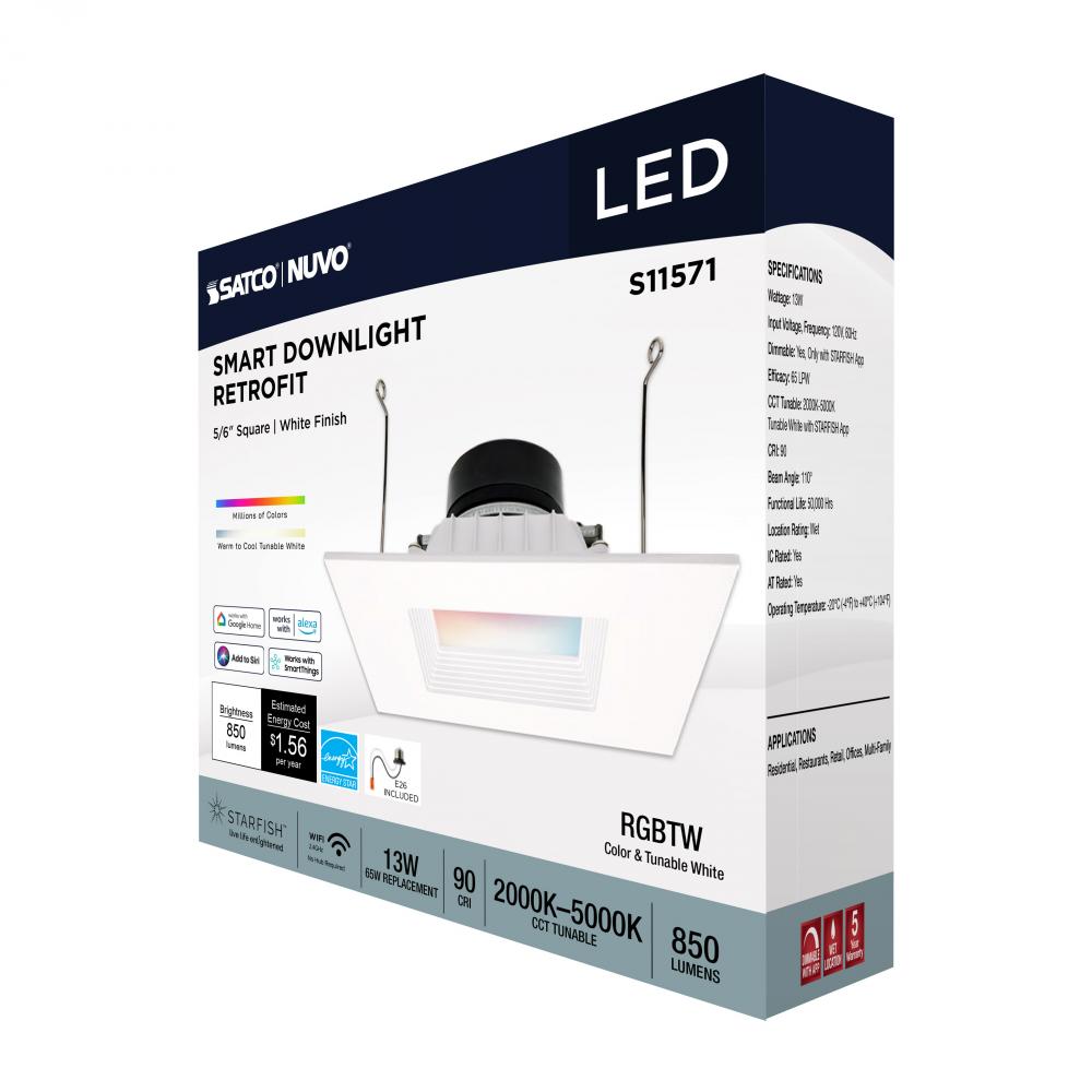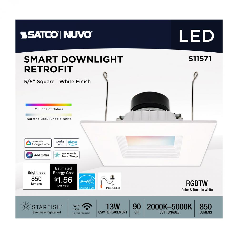 SATCO NUVO's S11571 LED Retrofit Downlight with STARFISH technology is the ultimate choice for smart lighting and ambiance control. Download the STARFISH app to customize any tunable white color temperatures from 2000K warm white to 5000K natural light