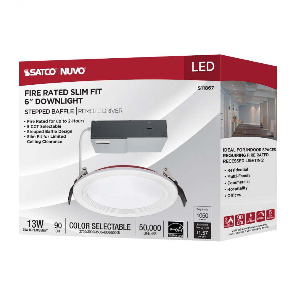 SATCO NUVO's 6 inch Stepped Baffle Fire Rated Downlight is the perfect solution for installations with low ceiling clearance. Designed to provide exceptional illumination, this downlight provides two hours of protection in the event of a fire. Increase