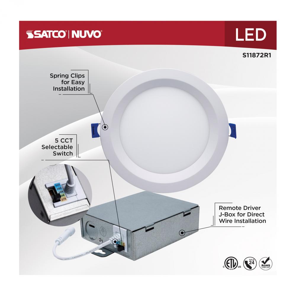 SATCO NUVO's low-profile 6" round regress baffle downlight, S11872R1, combines performance, versatility, and ease of installation. It features 5 CCT selectable settings (2700K–5000K) to accommodate a wide range of lighting preferences, while the