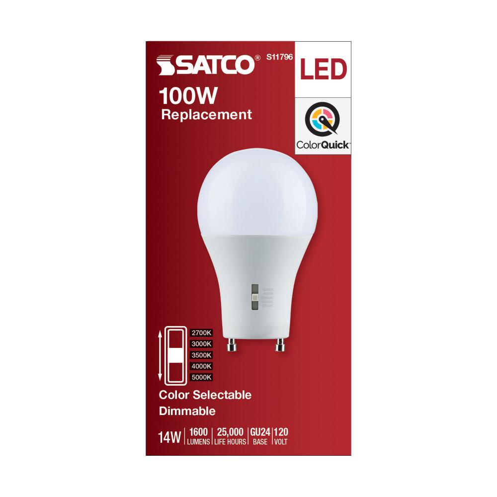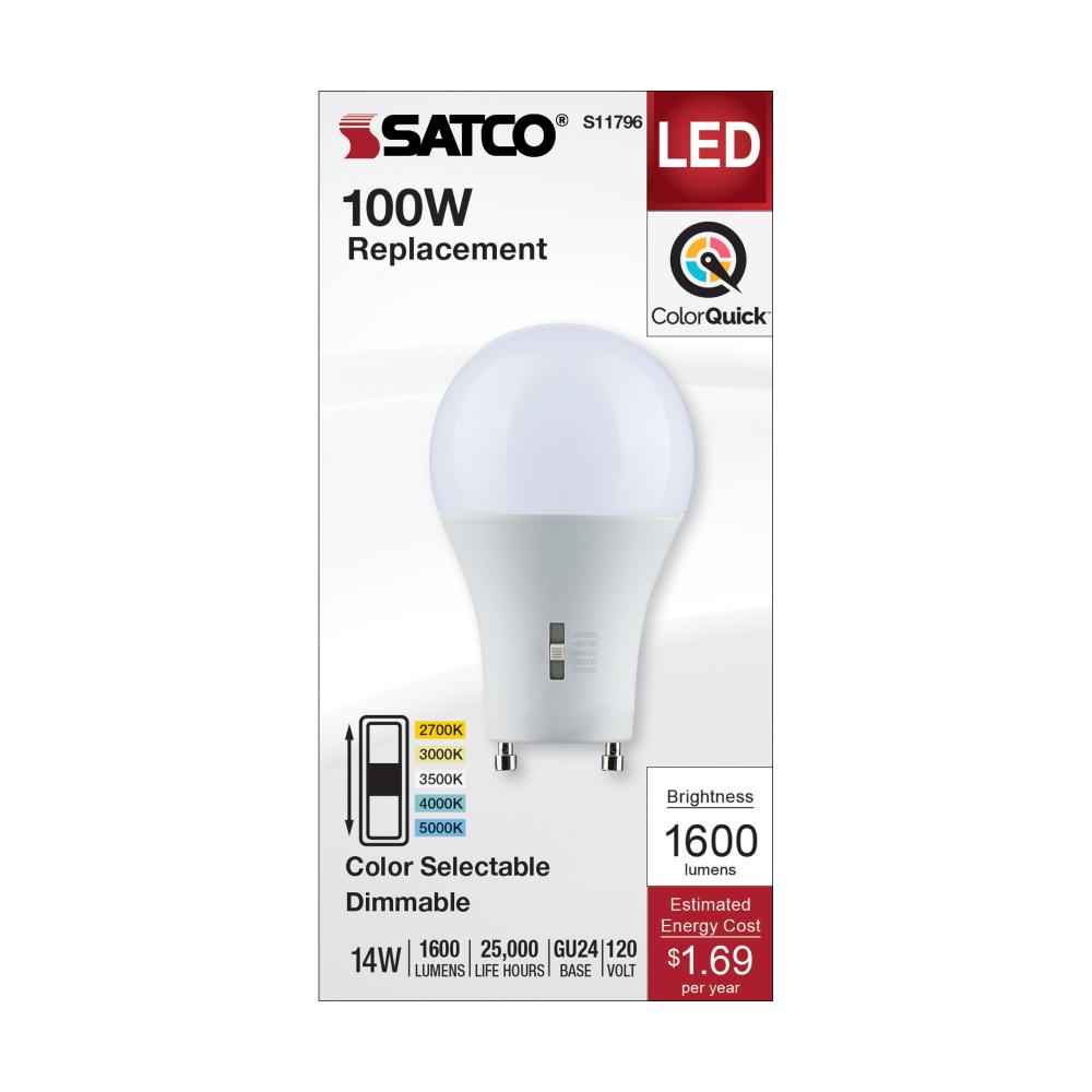 Illuminate any space with ease using SATCO NUVO's 14W A19 lamps with GU24 base and ColorQuick technology. These versatile lamps allow you to choose the perfect color temperature for any room, creating an atmosphere that suits your mood. Whether you wan