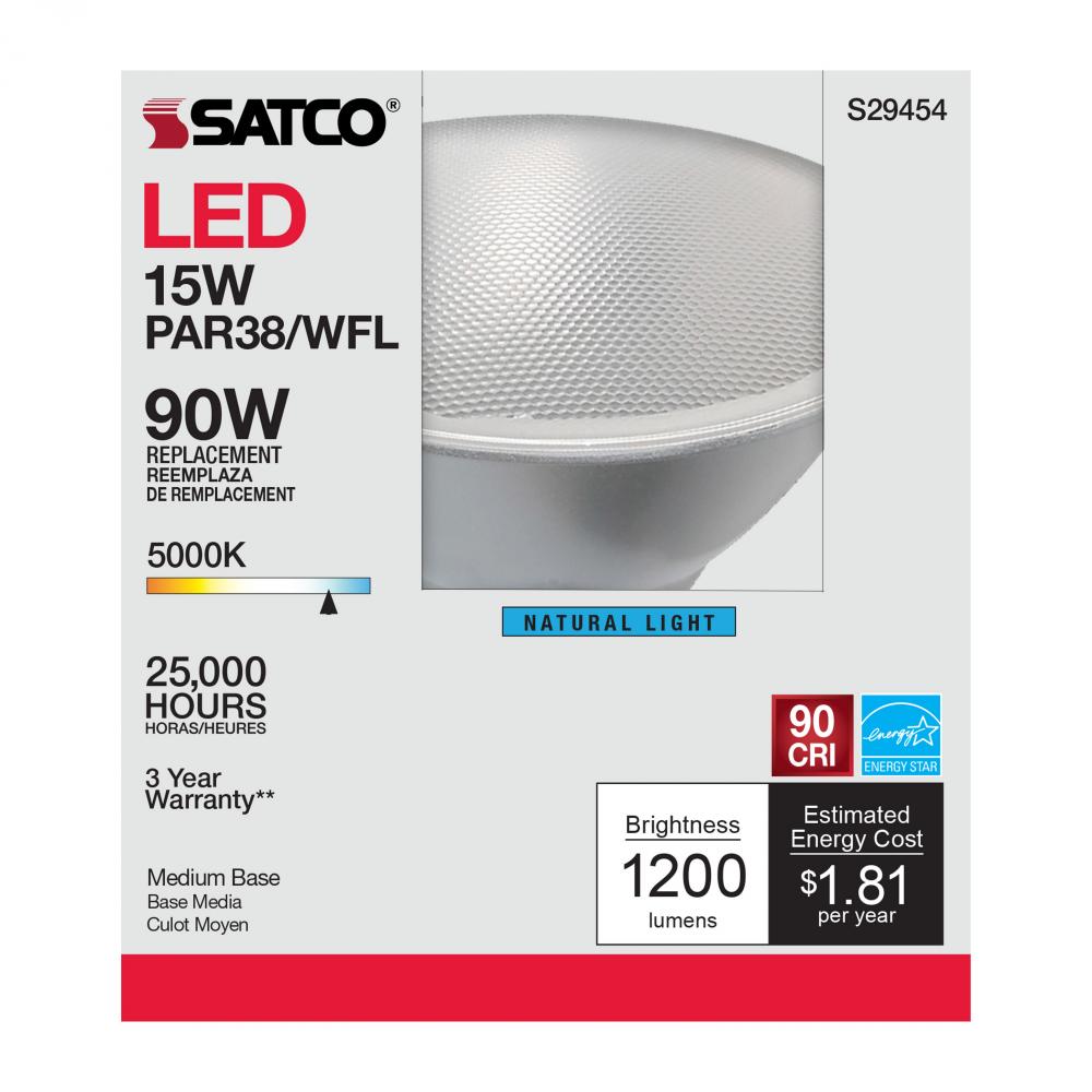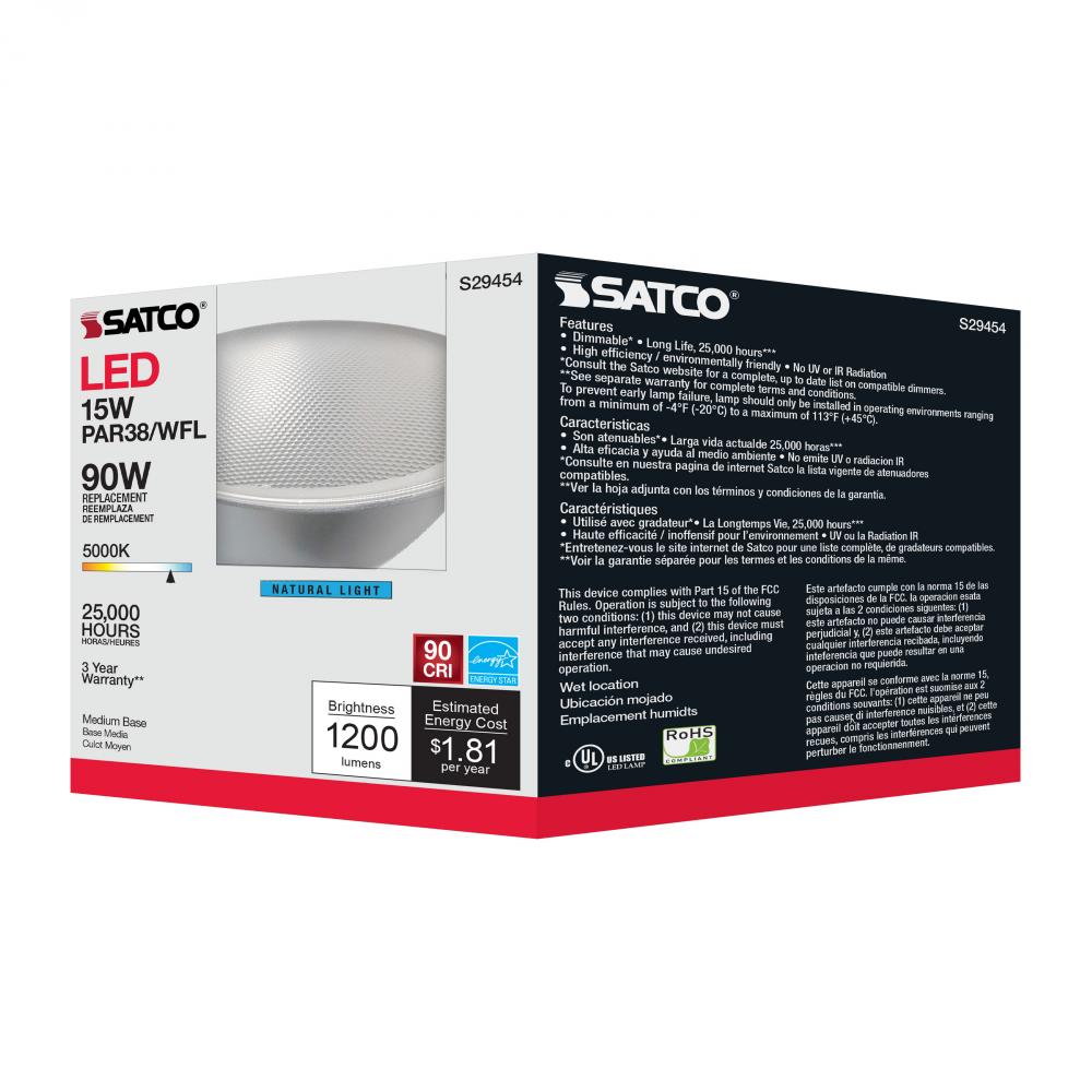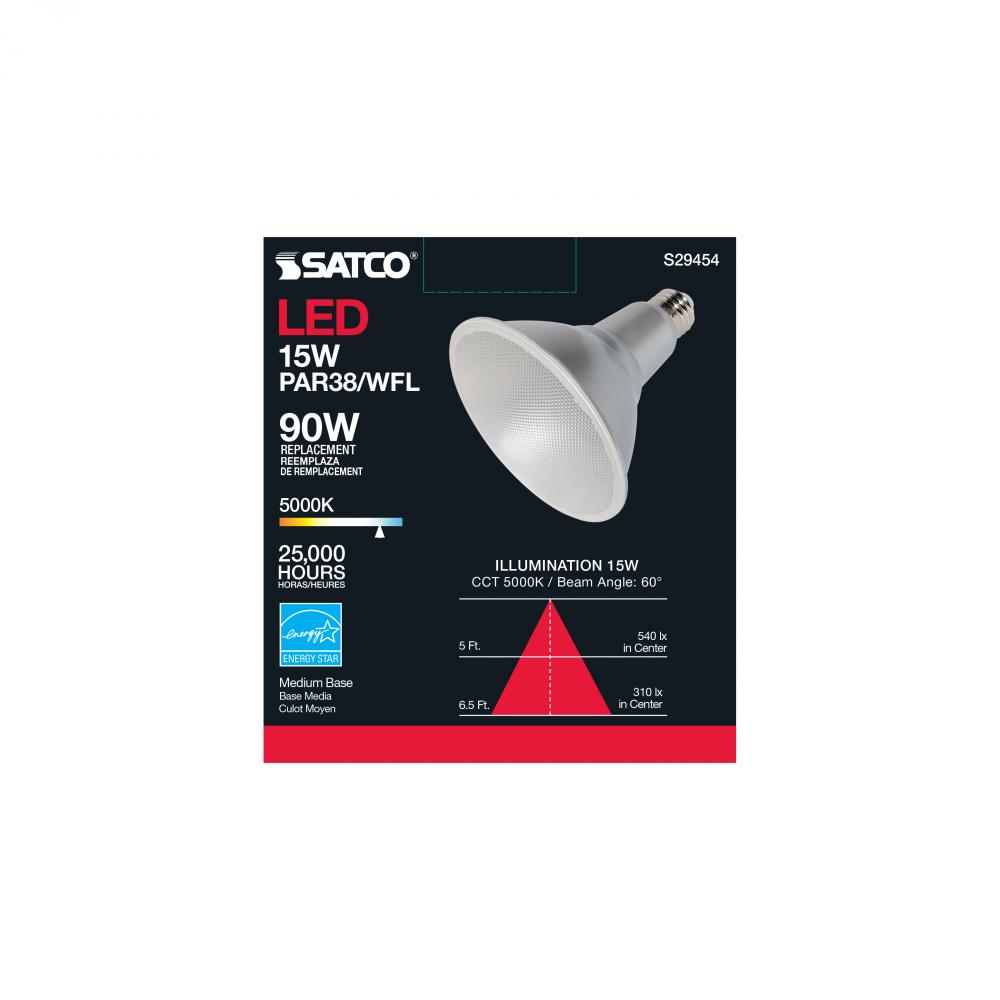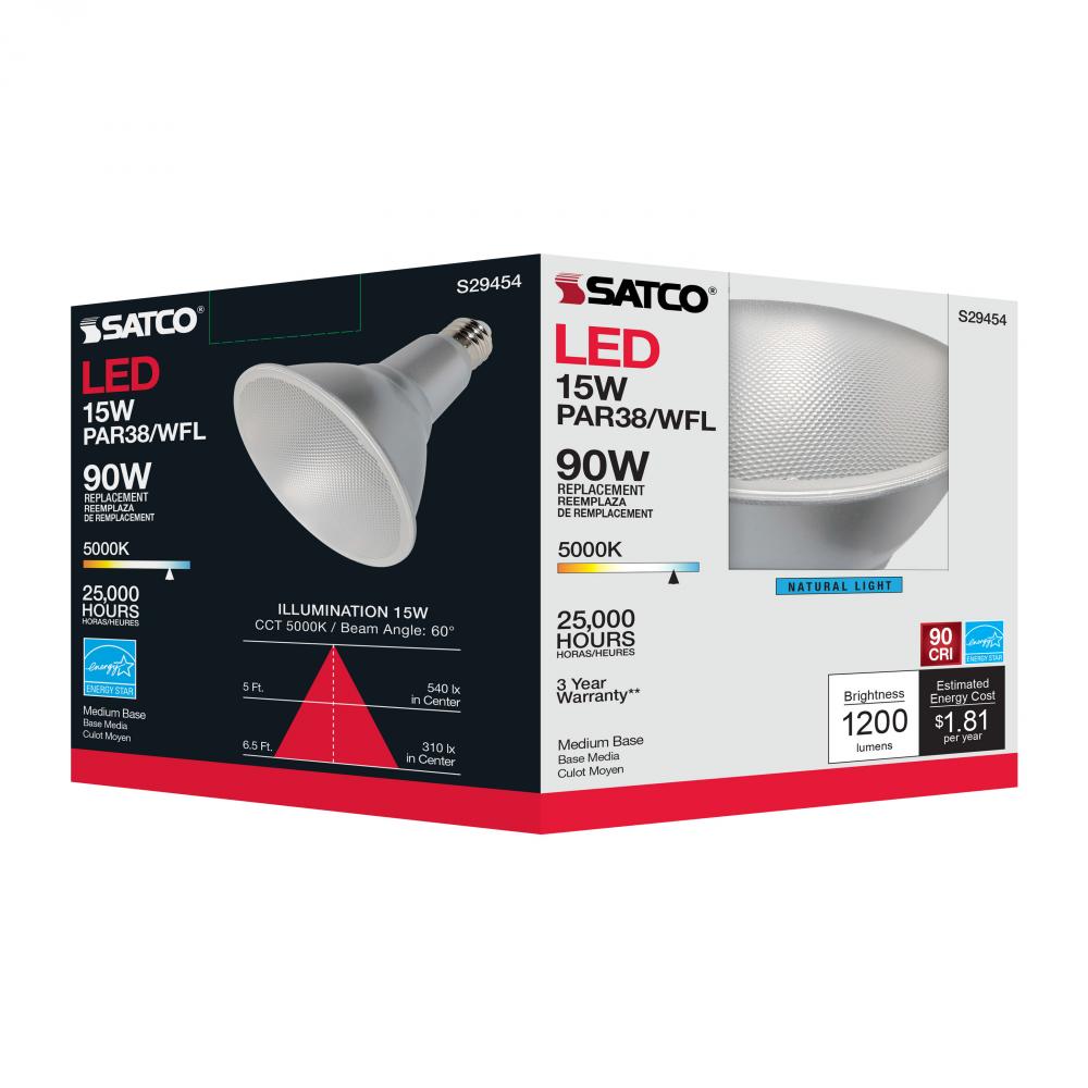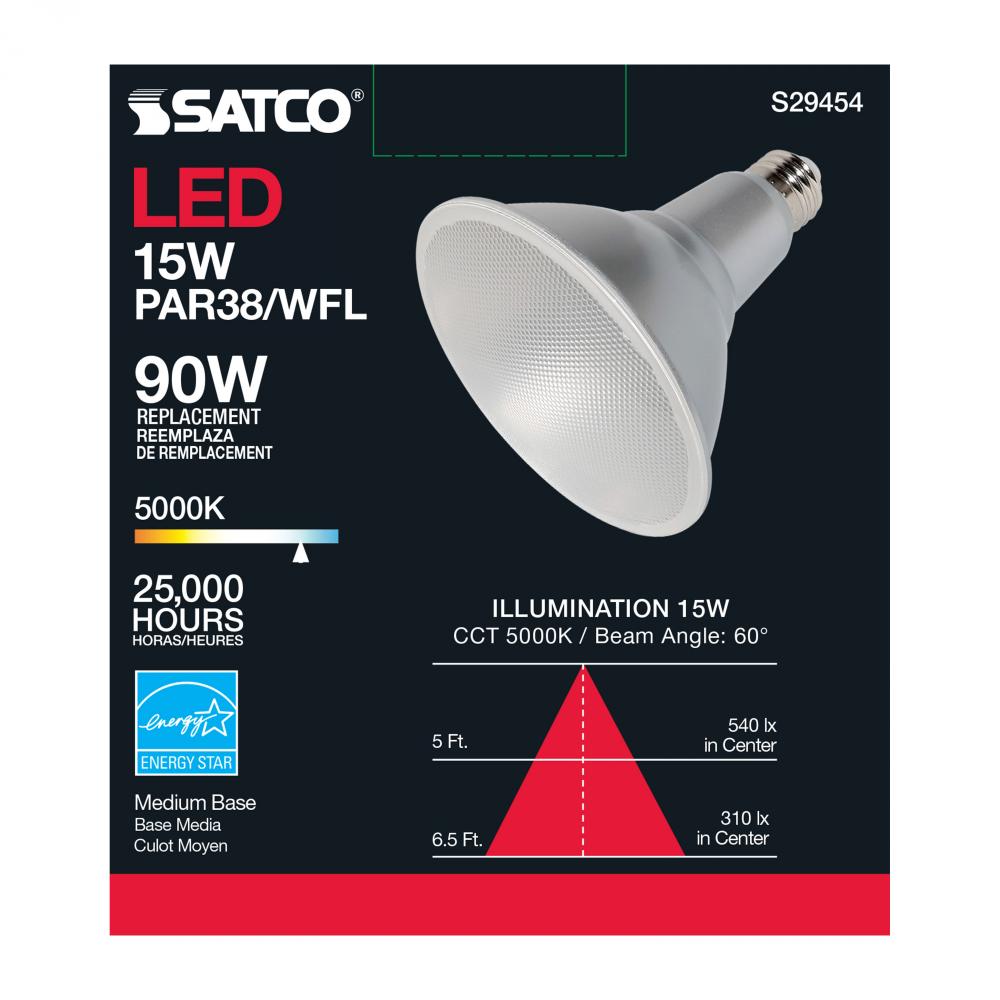 Satco's S29454 LED 15-watt, PAR38 lamp maintains the familiar look of the Halogen PAR and Gen1 LED lamps they replace; but at 90 CRI and a higher lumens per watt ratio, it delivers superior light and improved efficiency. Designed for use in track, rece