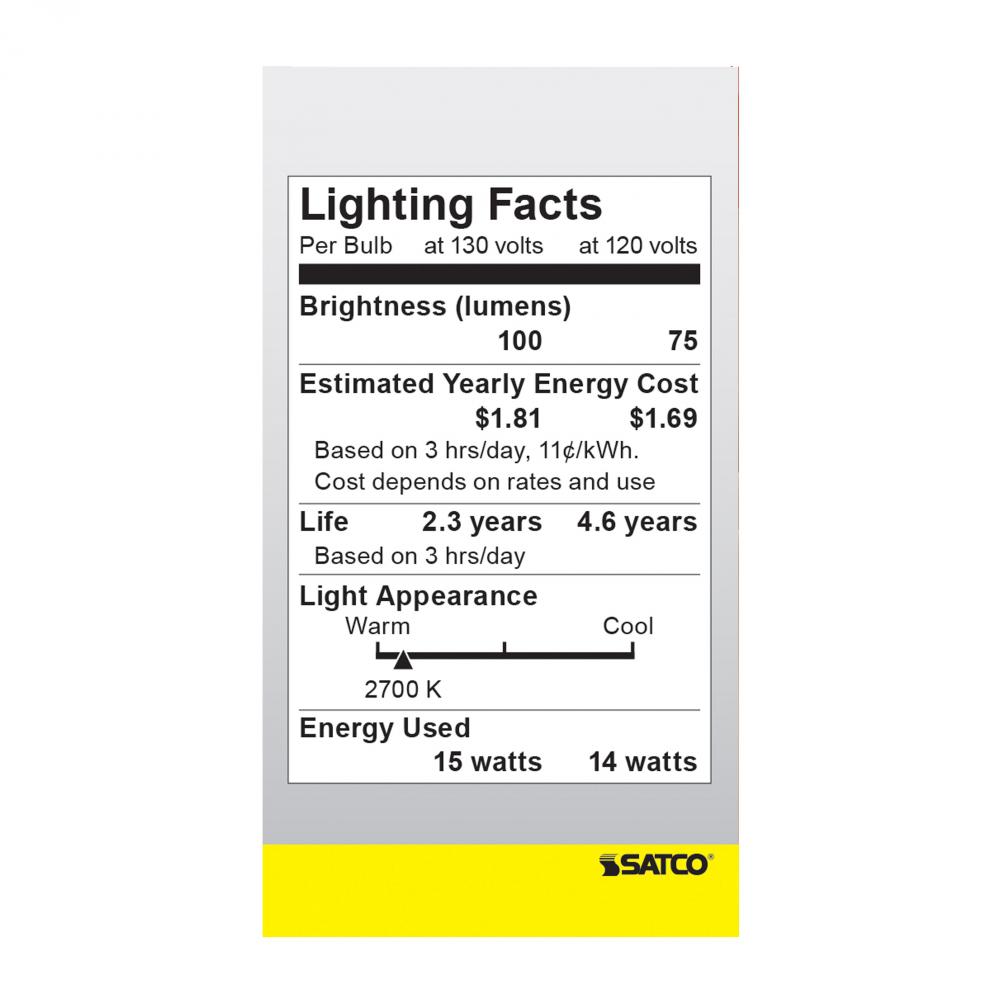 15 Watt A15 Incandescent; Frost; 2500 Average rated hours; 100 Lumens; Medium base; 130 Volt; 2/Pack