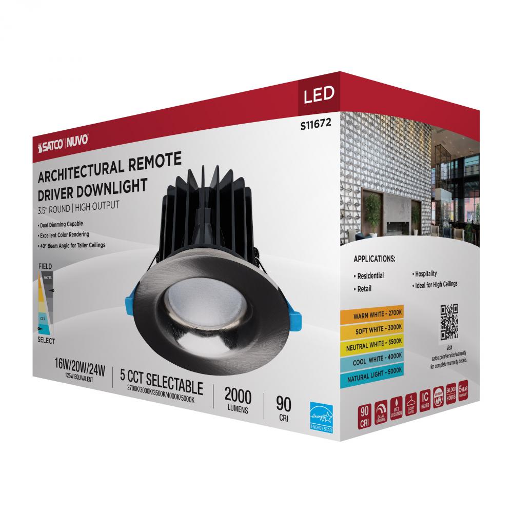 16/20/24 Watt LED Remote Driver Downlight; 27K/30K/35K/40K/50K CCT; Field Selectable; Round; Brushed