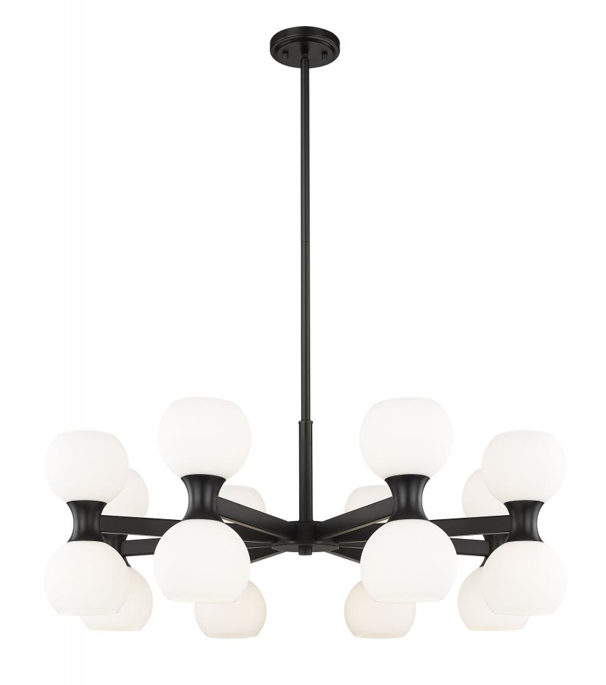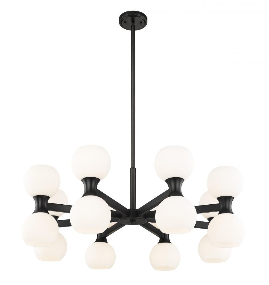 Give a nod to the charming Mid-Century Modern aesthetic with a hint of Art Deco thrown in. This 16-light chandelier from the Artemis collection delivers both uplighting and downlighting through matte opal glass open globes nestling in a frame made of matte black finish steel. A round silhouette ratchets up the festive look of a fixture with personality and plenty of ambient lighting.