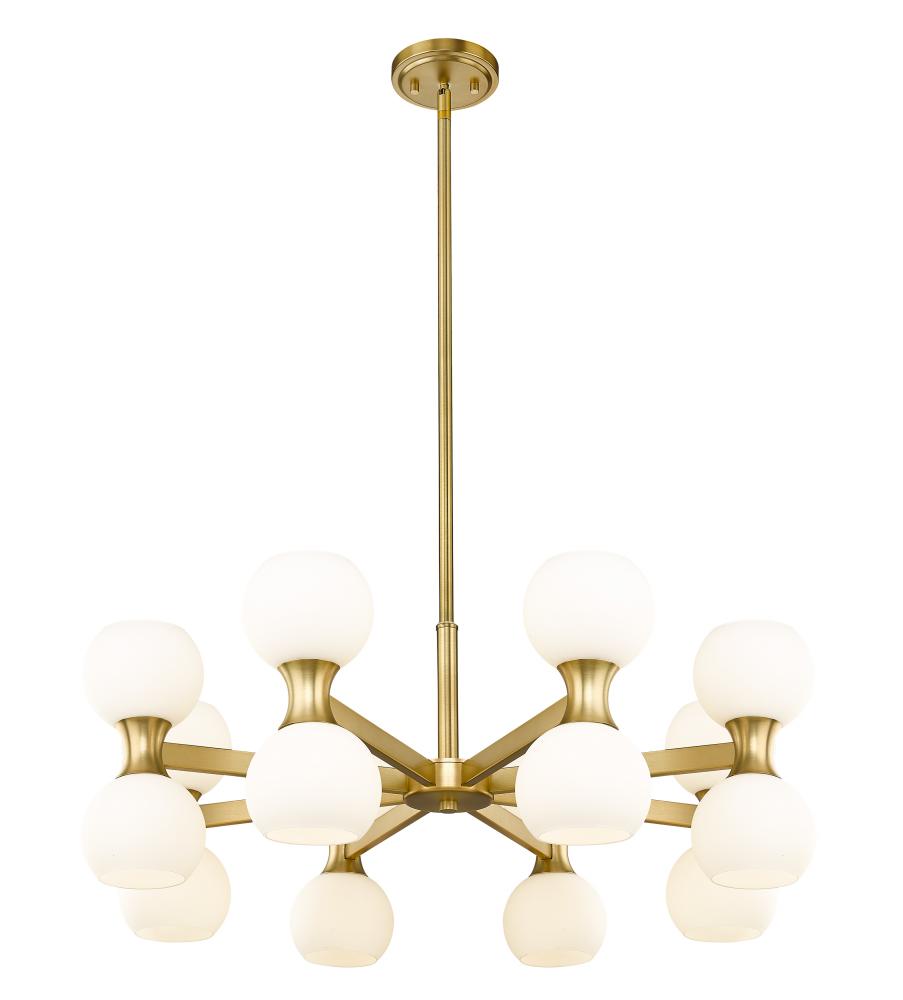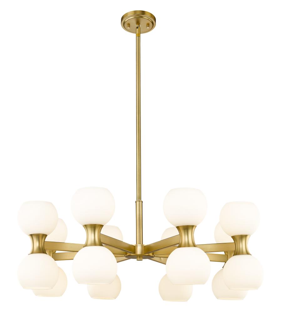 Create a stir in a dining room, living area, or entryway with a fixture focused on a blend of Mid-Century Modern and Art Deco motifs. This 16-light chandelier from the Artemis collection delivers both uplighting and downlighting through matte opal glass open globes nestling in a frame made of modern gold finish steel. A round silhouette ratchets up the festive look of a fixture with personality and plenty of ambient lighting.