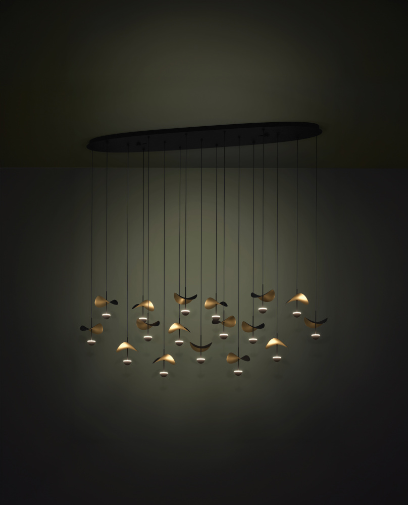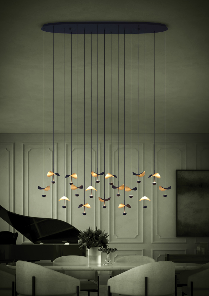17 LT Linear Pendant w/ Black Finish & Black & Gold Leaf Shades