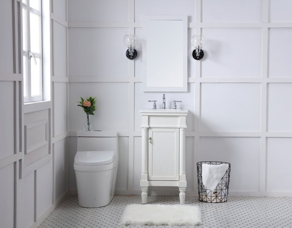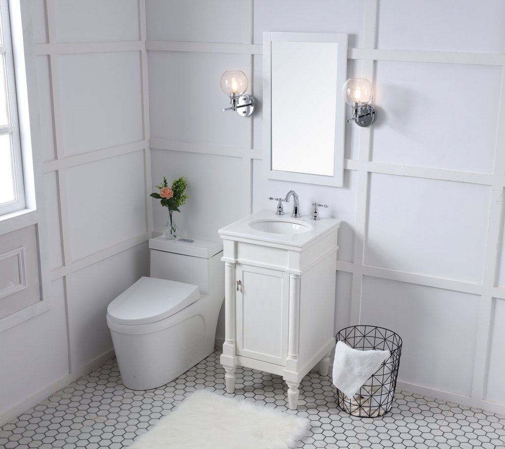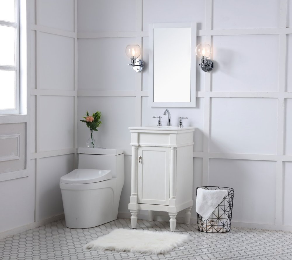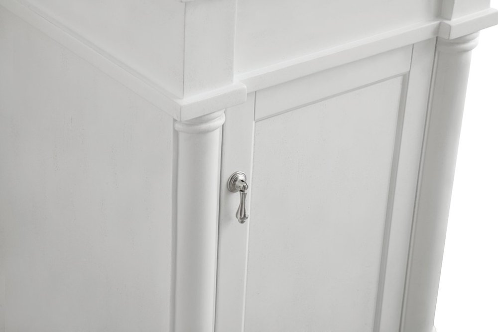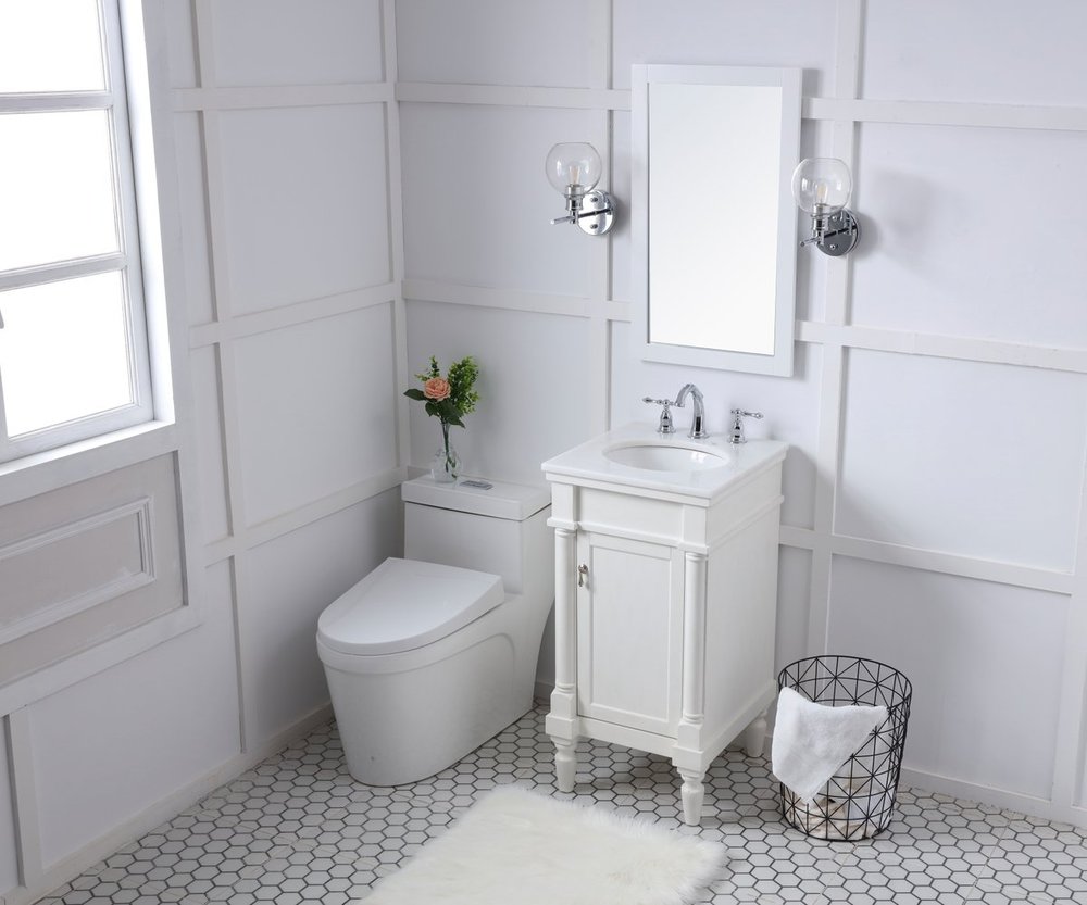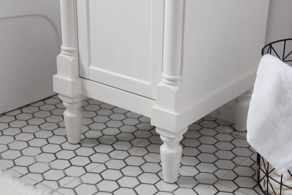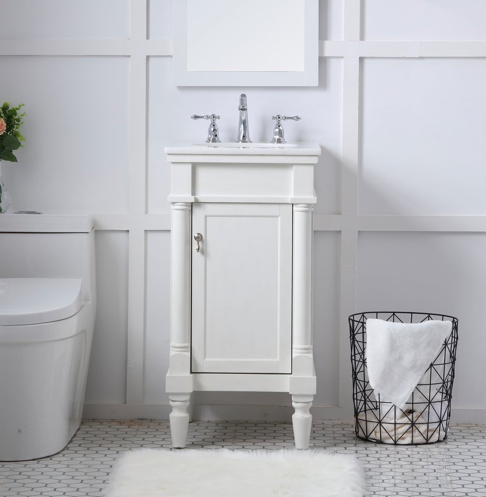 This traditionally styled, yet fashionably designed vanity can add distinction and grace to your home or office bathroom. Beautifully combining a lustrous white marble countertop with an oval white porcelain under mount sink, and a hand painted antique white Single-door cabinet with a shelf inside, brushed steel door pulls, standing on turned, tapering legs. You’ll enjoy its charming allure for many years to come. Measurements: W18" x D19” x H35”