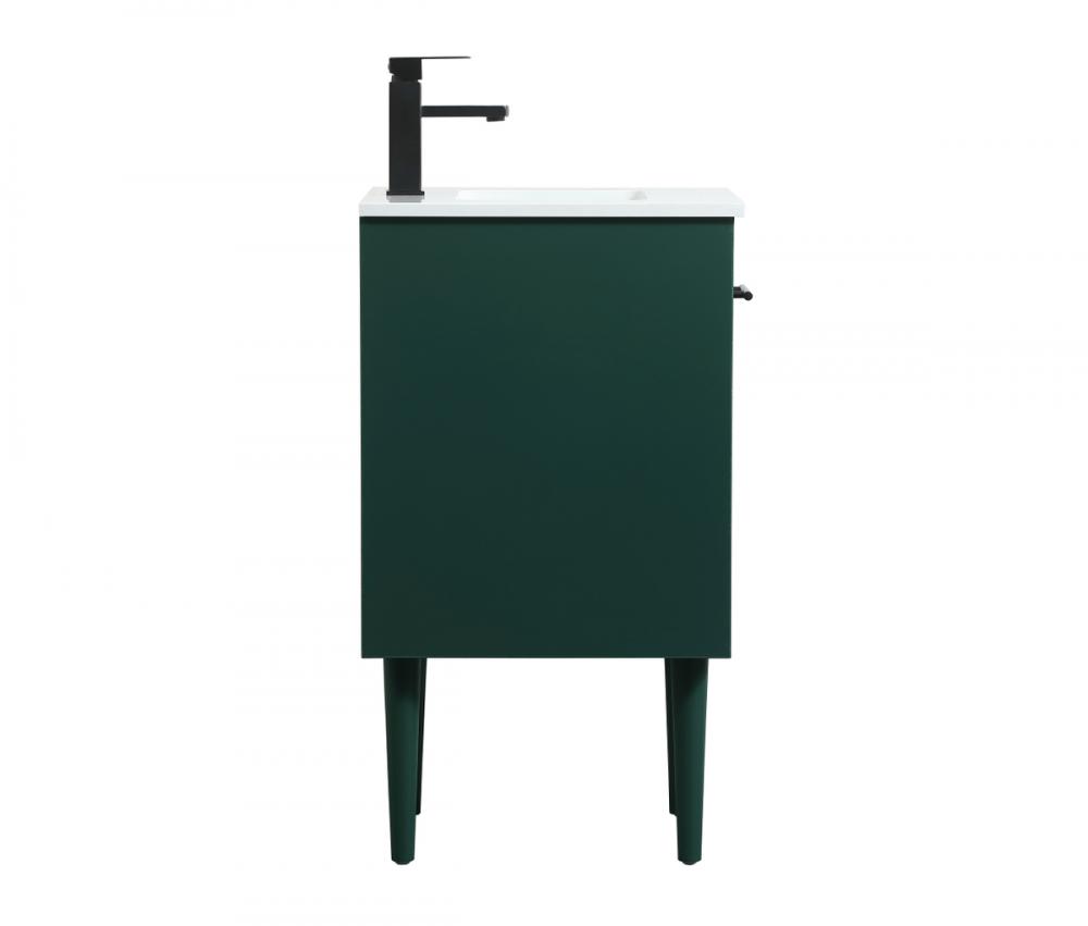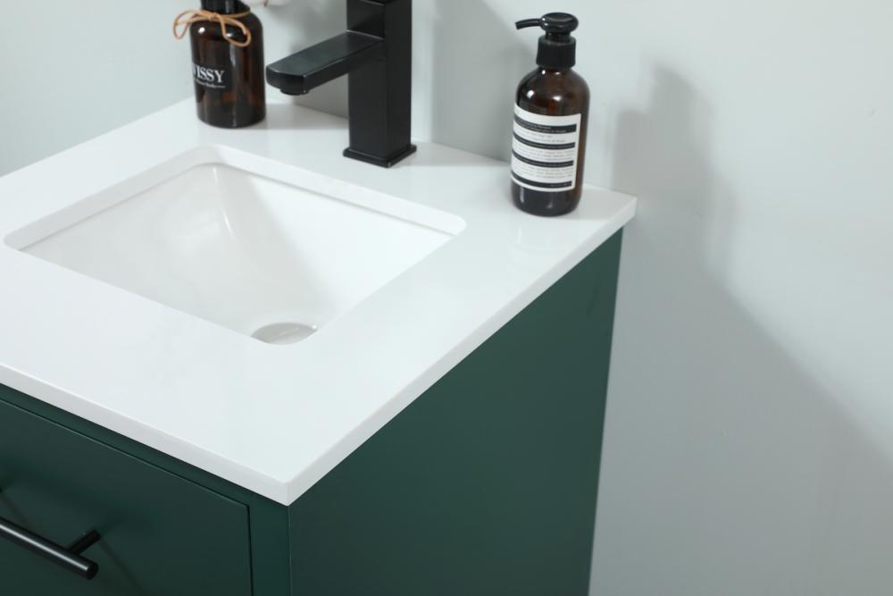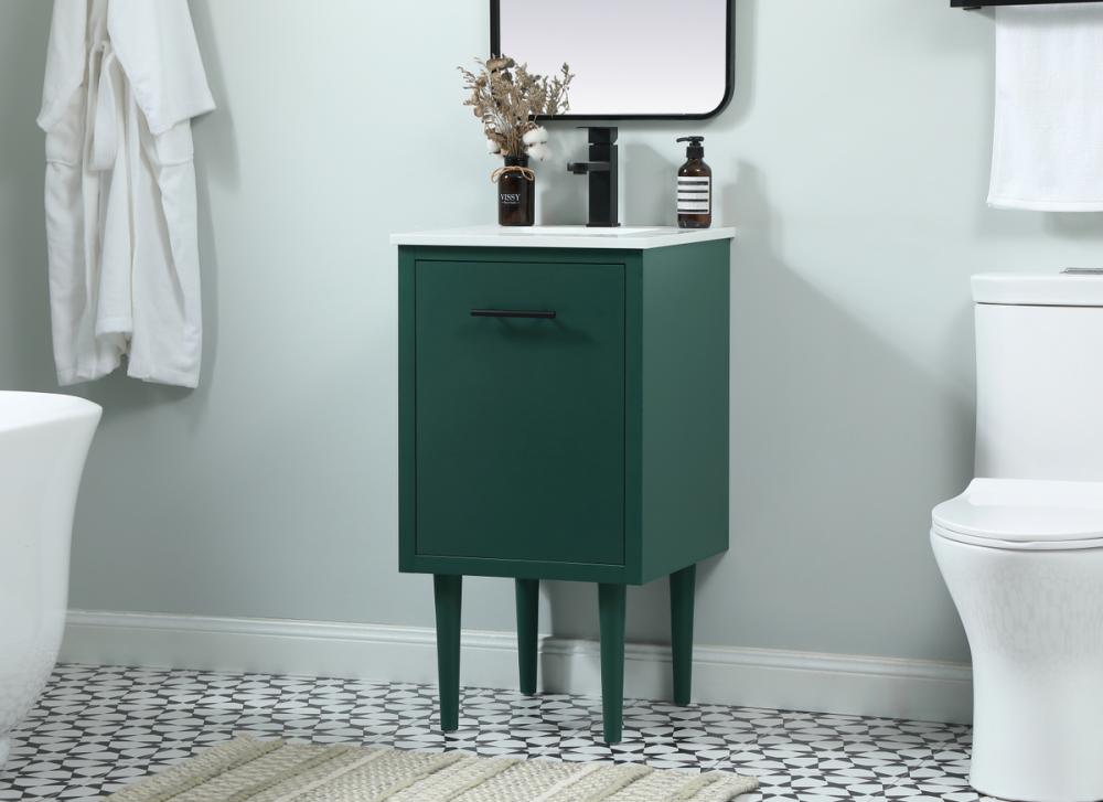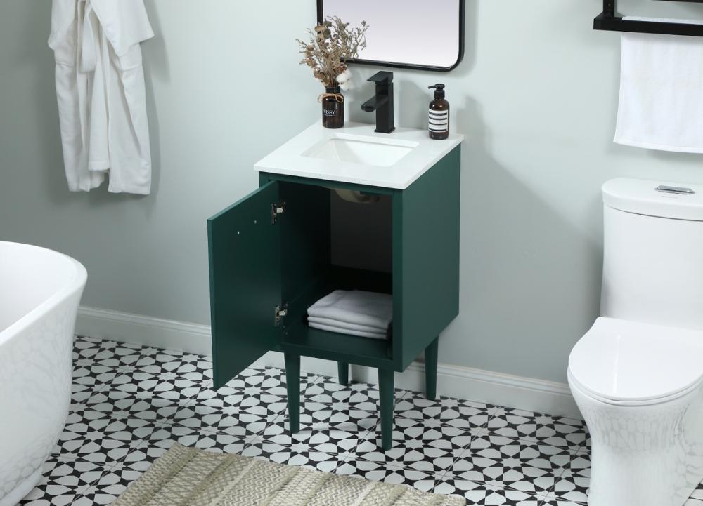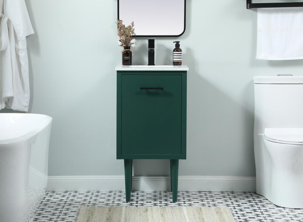 Delve into a world of minimalistic fashion and contemporary styling with this midcentury modern vanity. The clean lines anchors the design, while the straight tapered cylinder legs add subtle interest. Bar pull handle adorns the soft closing door hiding the base of the rectangular porcelain sink and letting you store your bathroom necessities and toiletries. The compact size makes it the perfect vanity for any bathroom or powder room, regardless of size. Whether you want to use this as a floating vanity or a freestanding vanity, the choice is yours. The durable ivory white engineered marble countertop complements the manufactured wood base vanity and is built to last.