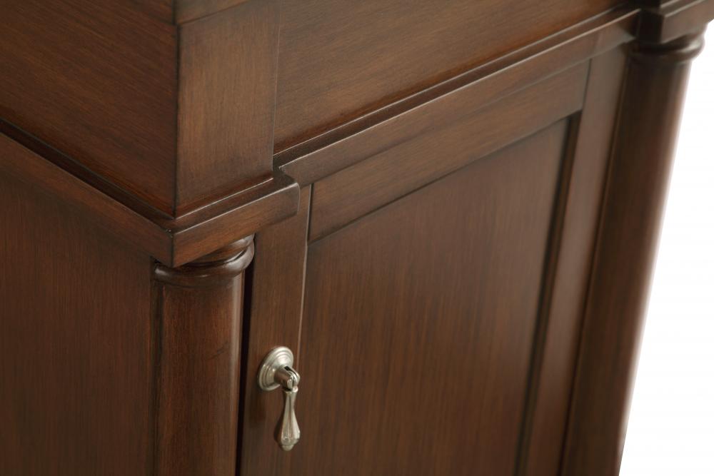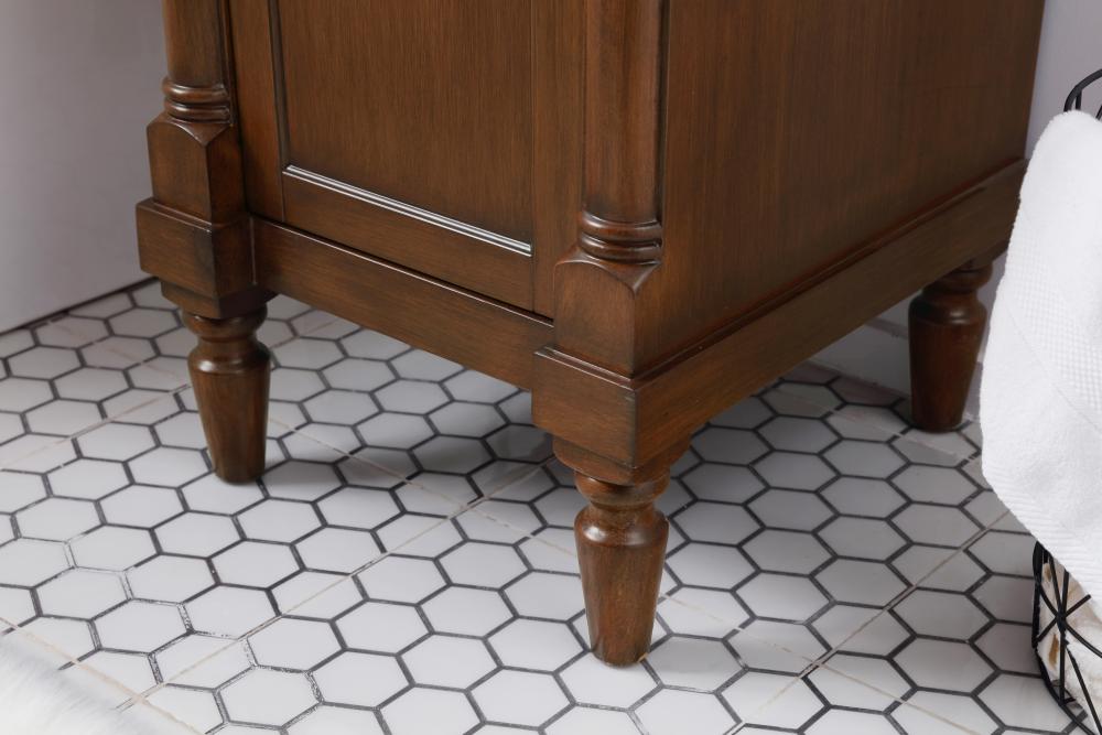 The subtle beauty of the Lexington collection exudes comfortable luxury. Its modern, yet traditional beauty will surely dress up your bathroom or powder room without any fuss. The ivory white engineered marble countertop with a porcelain undermount sink shows quiet opulence, and the legs support upright without fail. Durable hardware complements the refined hand painted finish, with pulls adorning the two cabinet doors and ornate knobs dressing the drawers, showcasing ample storage space within. Whether this vanity is in your bathroom or for guests, its presence will surely elevate the aesthetics of your room.