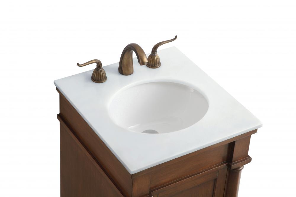 Designed with an ivory white engineered marble countertop with straight edge cut