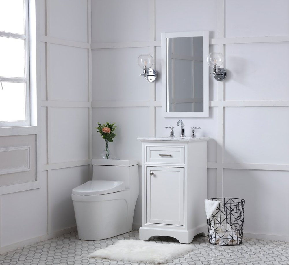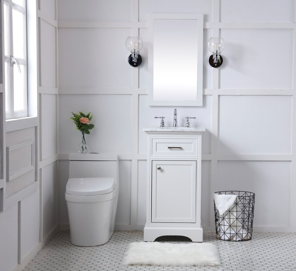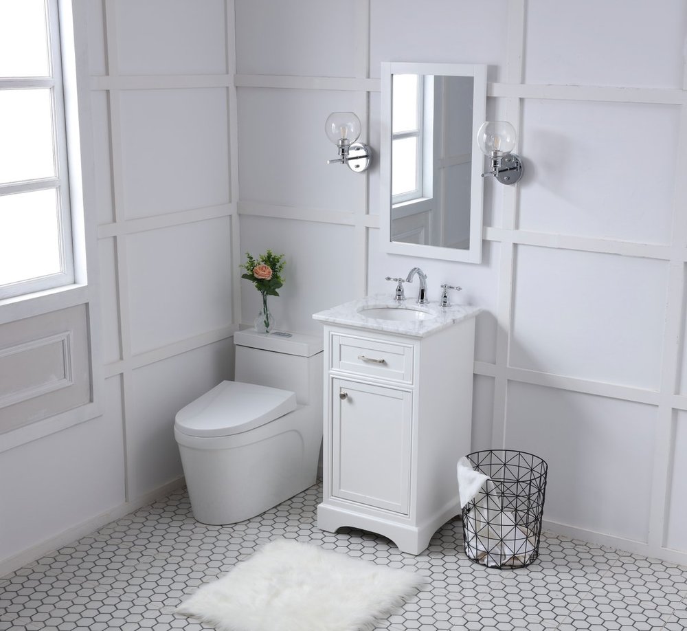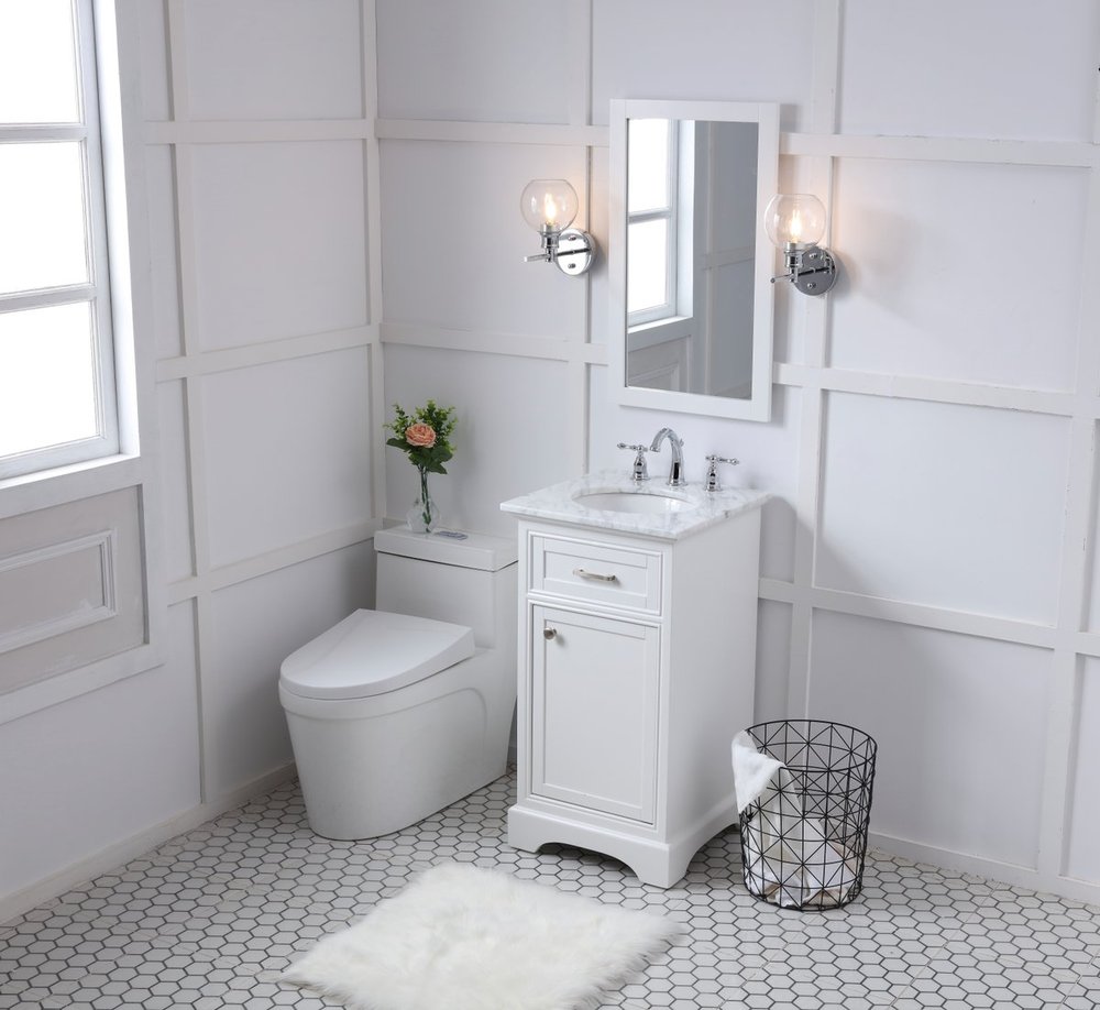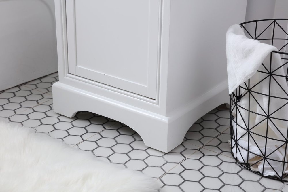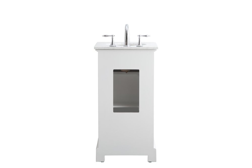 From its Italian Carrara white marble top to its contemporary style hand-painted white cabinet, it is sure to enhance either your home or office bathroom. Beneath its lustrous, natural marble top and oval, white porcelain under-mount sink, a handsome Single door cabinet with a shelf inside for all your bathroom essentials, highlighted with recessed panel doors, brushed steel bar handle and knobs, stands on a strong solid base. A wonderful balance of simplicity and practical function! Measurements: W19”xD19”xH35”