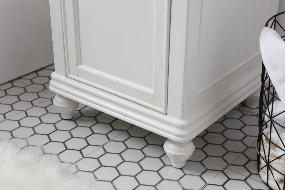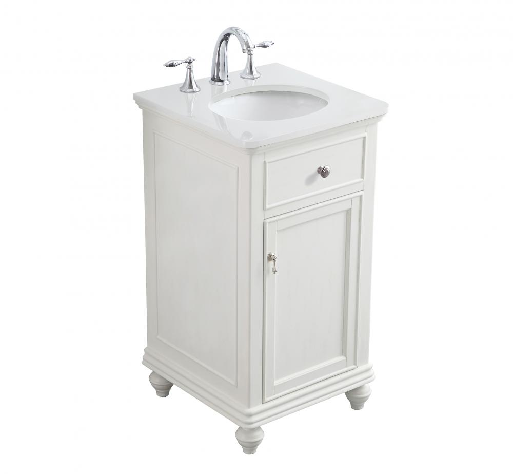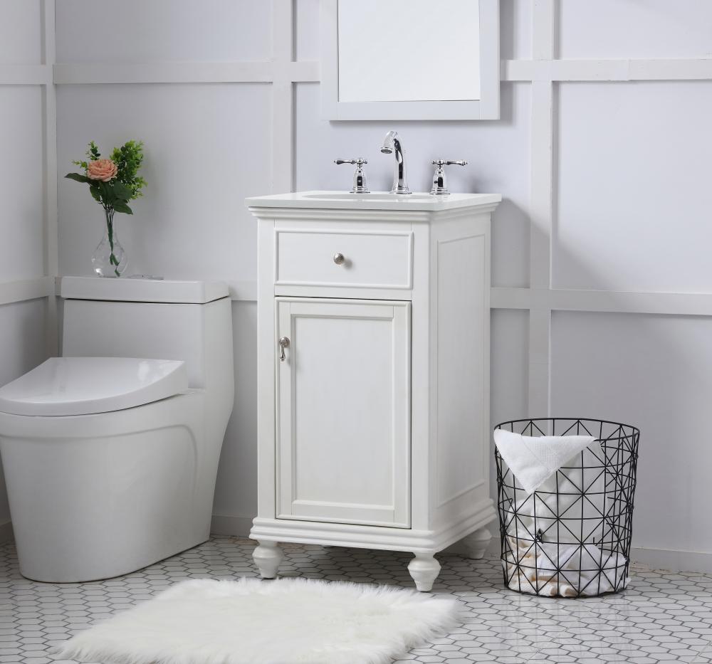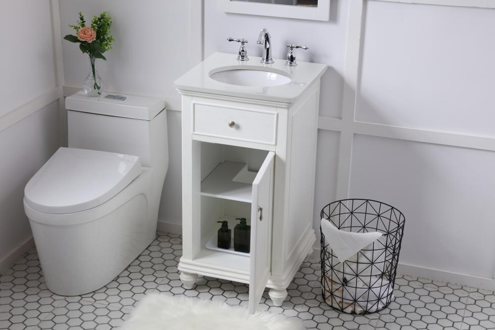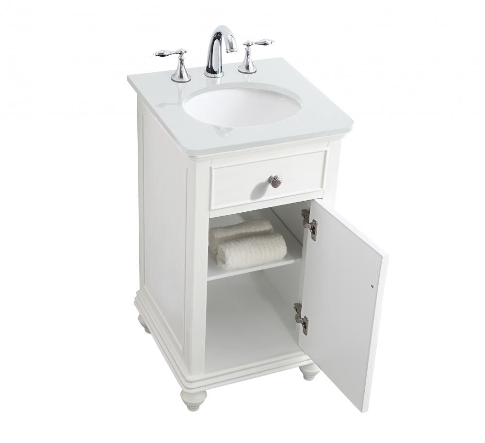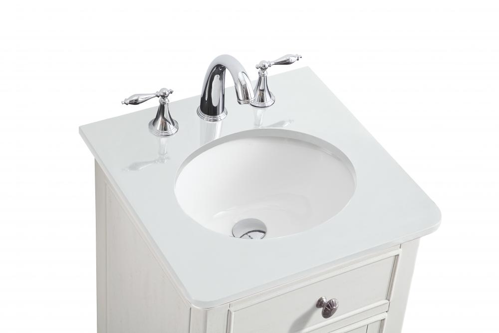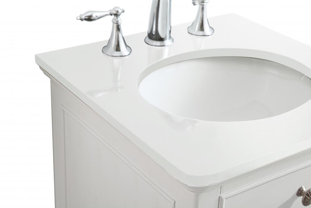 Designed with an ivory white engineered marble countertop with straight edge cut