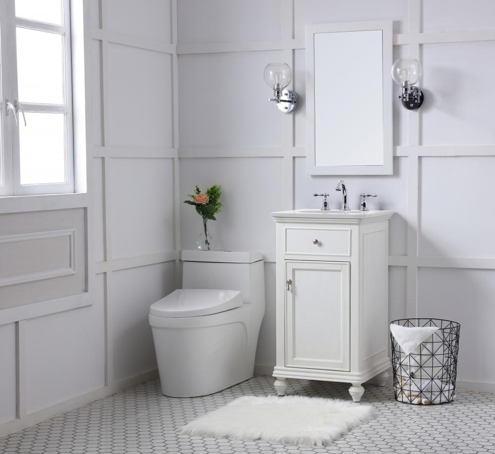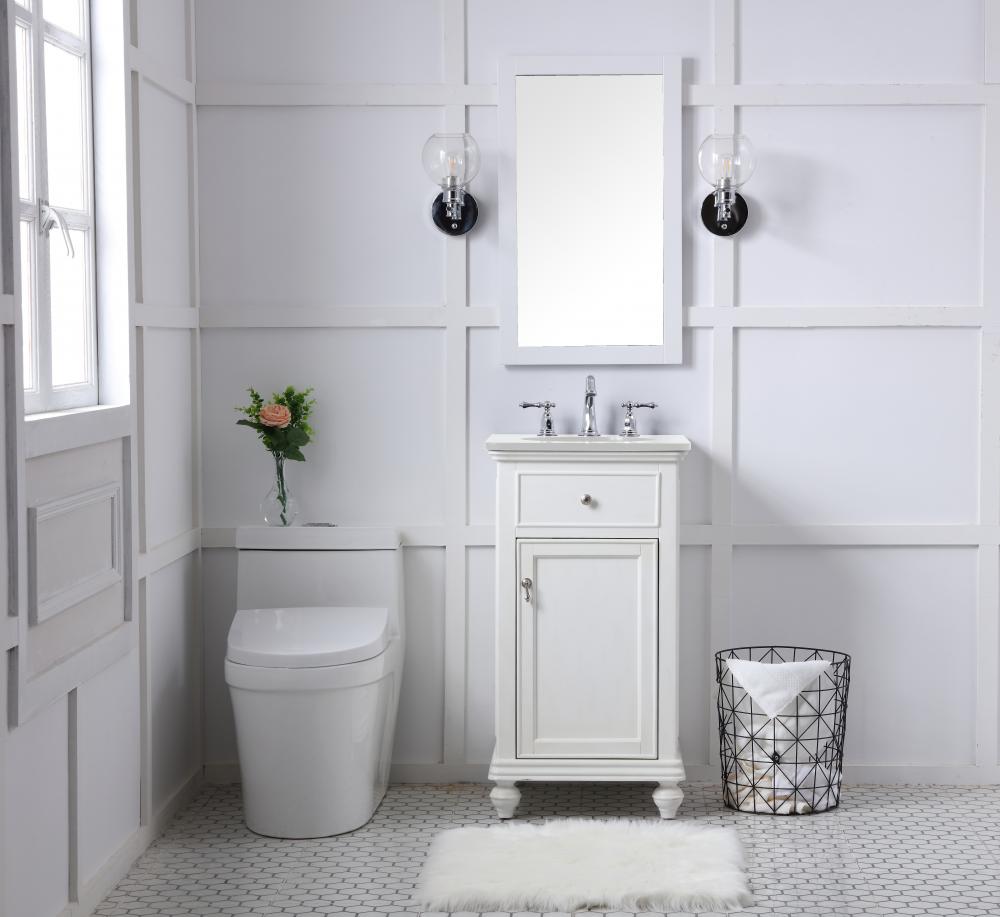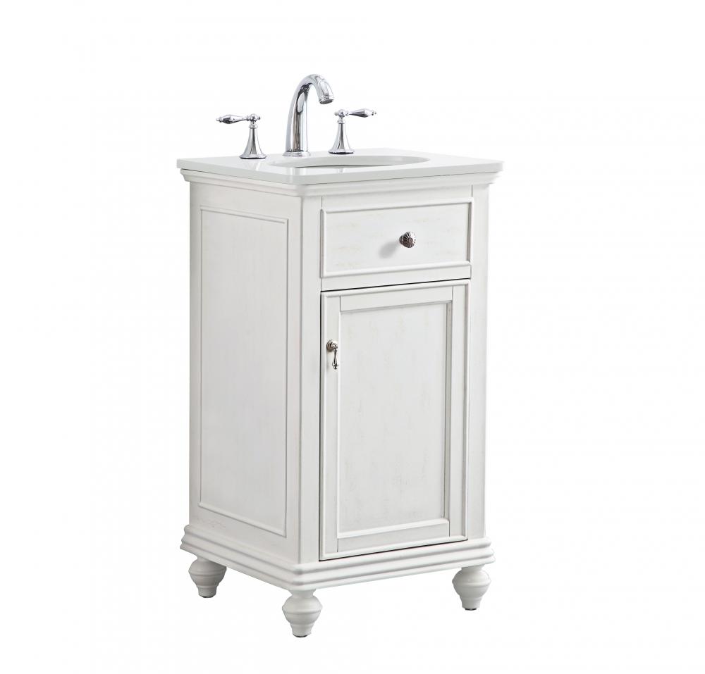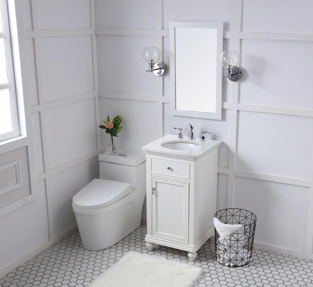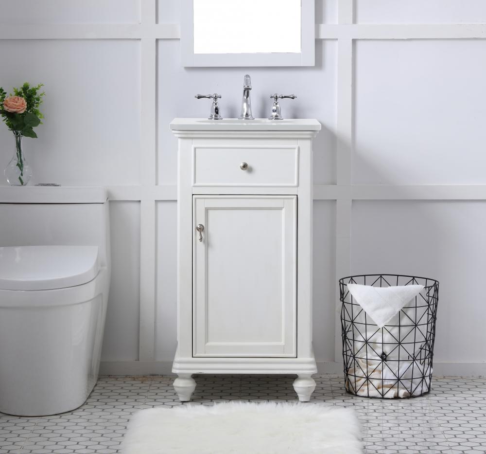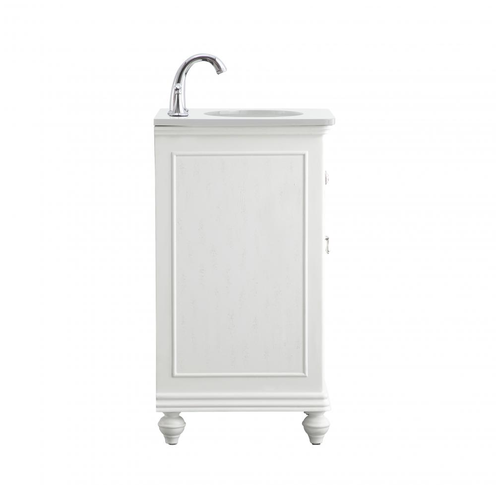Designed with an ivory white engineered marble countertop with straight edge cut