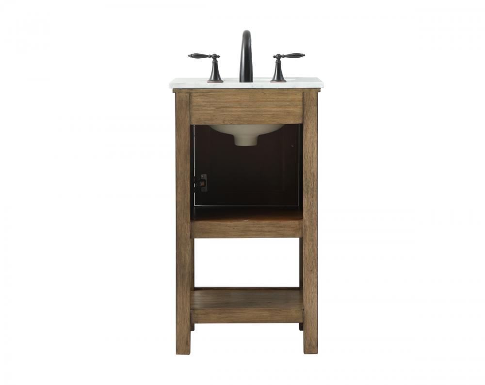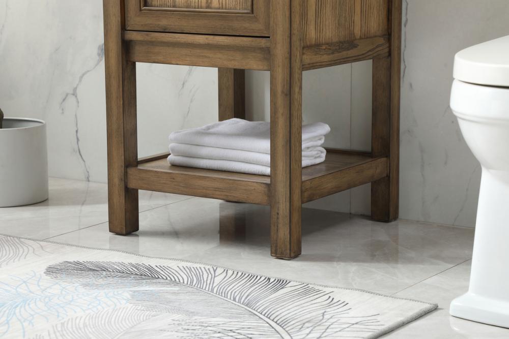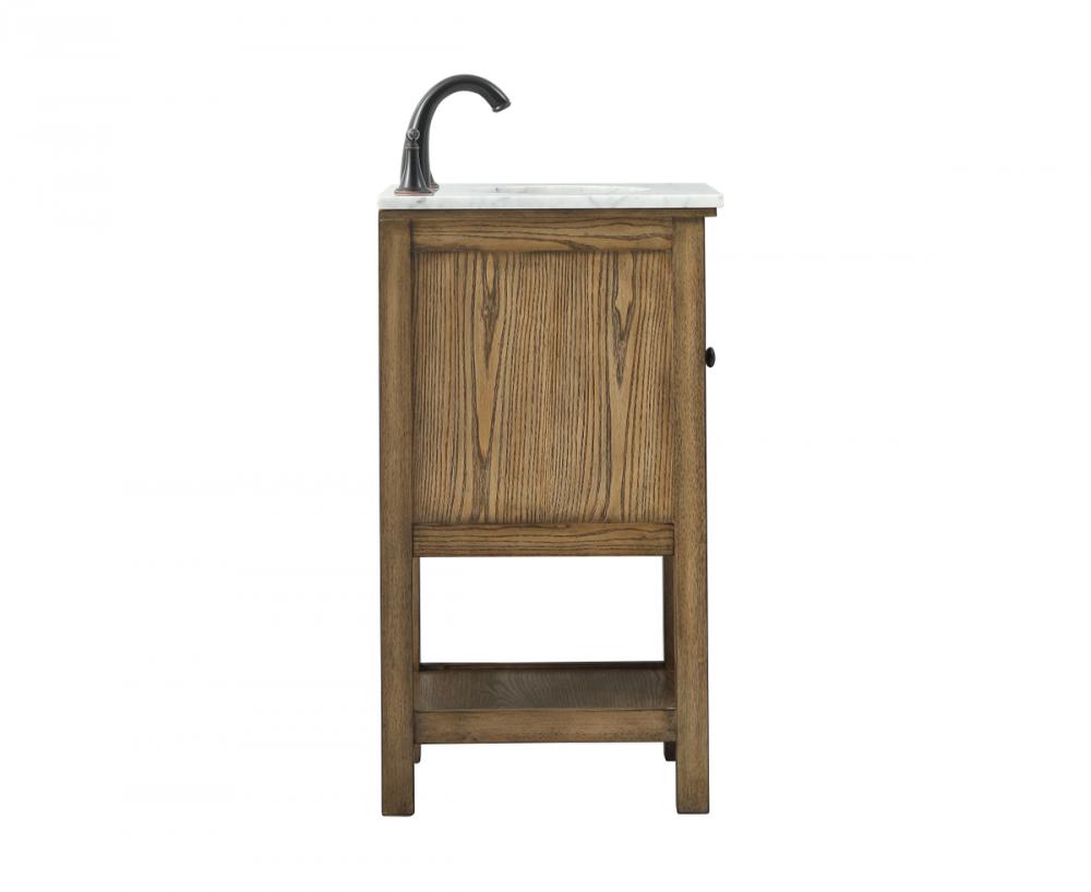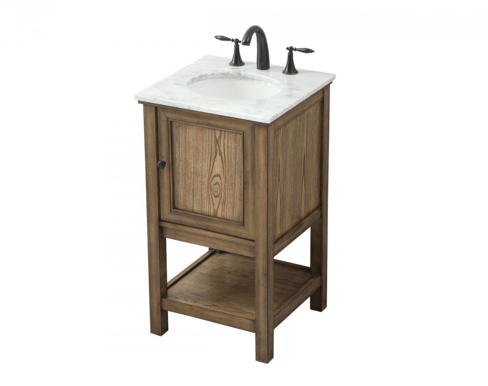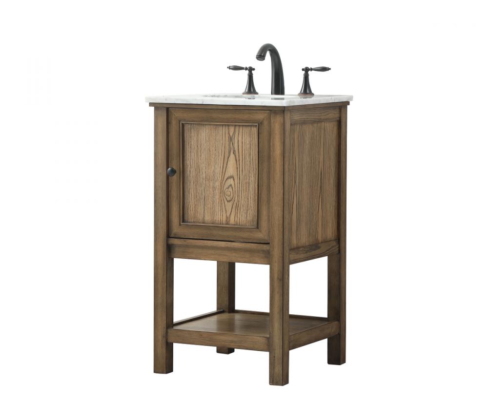 Comes with an undermount porcelain sink and a carrara white marble countertop