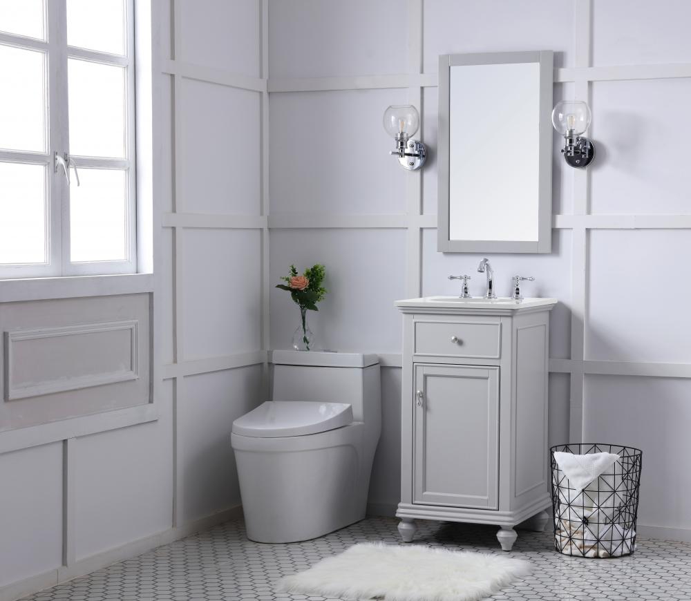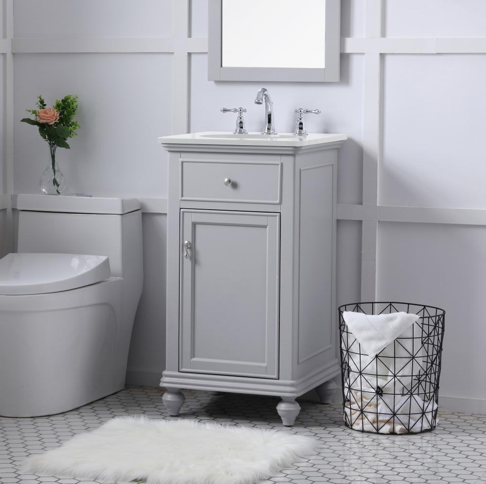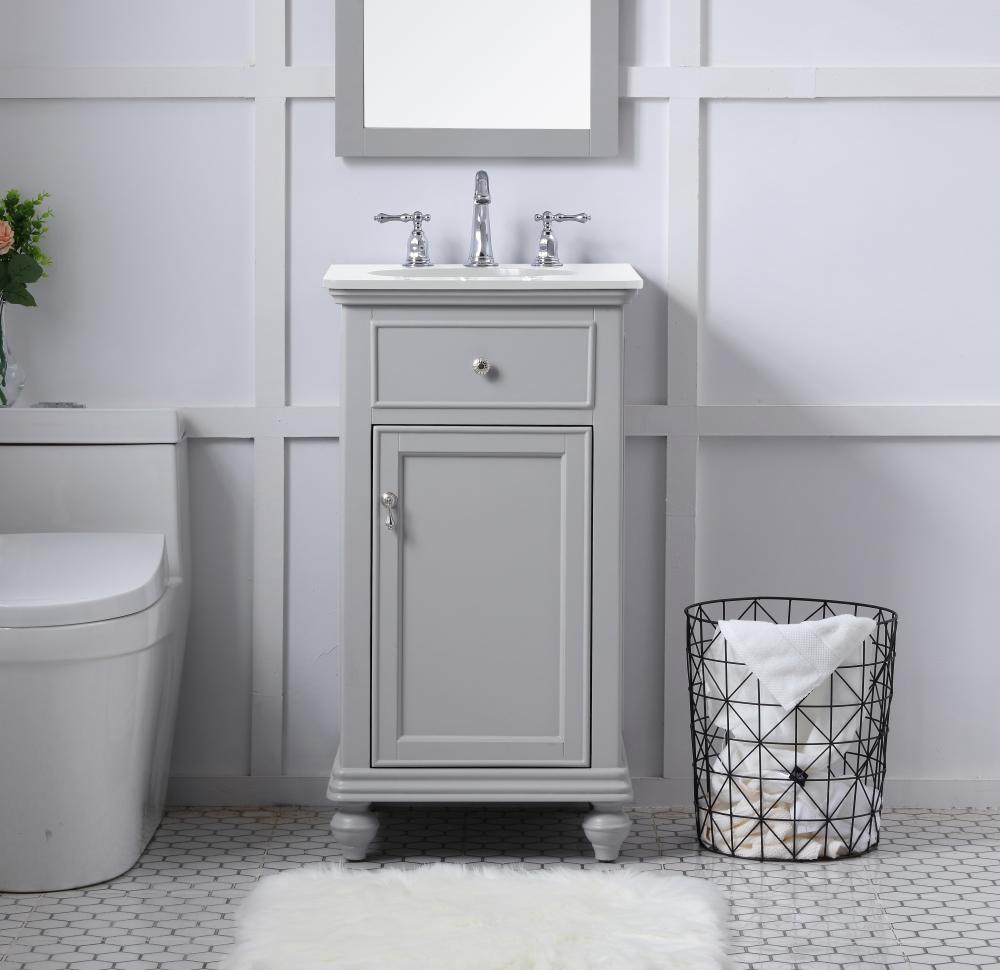 19 inch Single Bathroom vanity in light grey with ivory white engineered marble