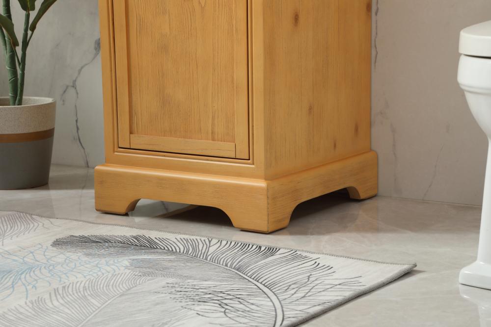 Clean lines and classic form can truly add a fresh look to your bathroom or powder room. This vanity, complemented by round hardware, will surely charm you with its confident style and subtle charisma. This vanity can store all of your bathroom toiletries, from extra towels to make up essentials. The vanity is crowned with carrara white marble and includes a porcelain undermount sink--adding both function and form that will truly amaze.