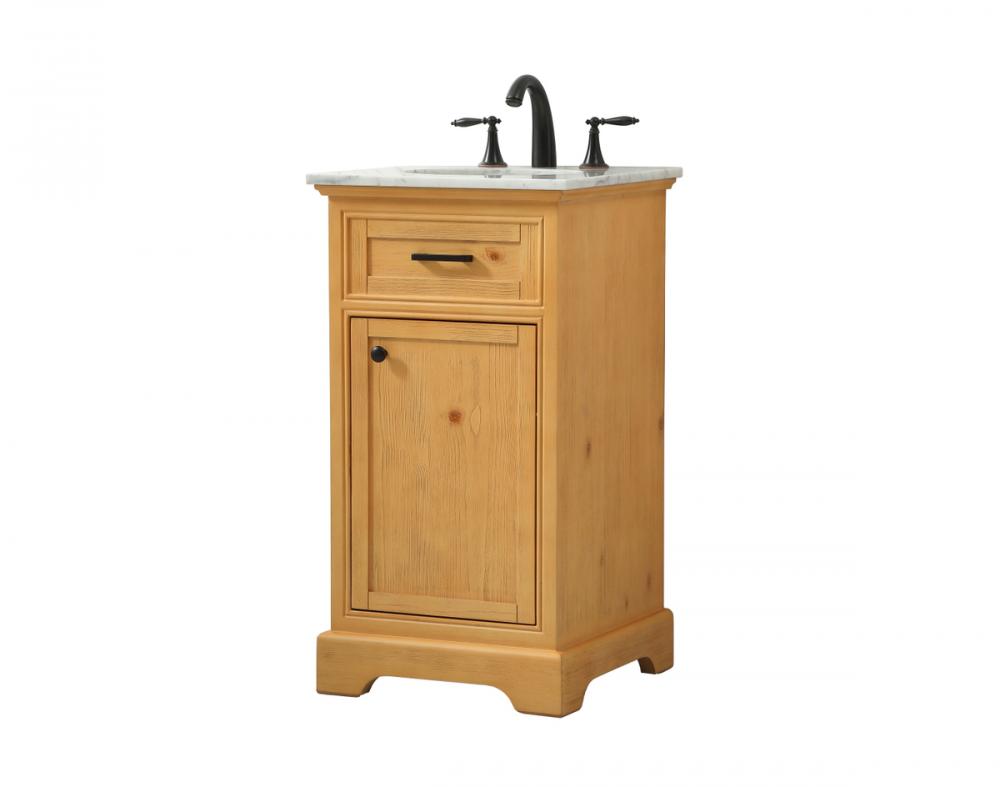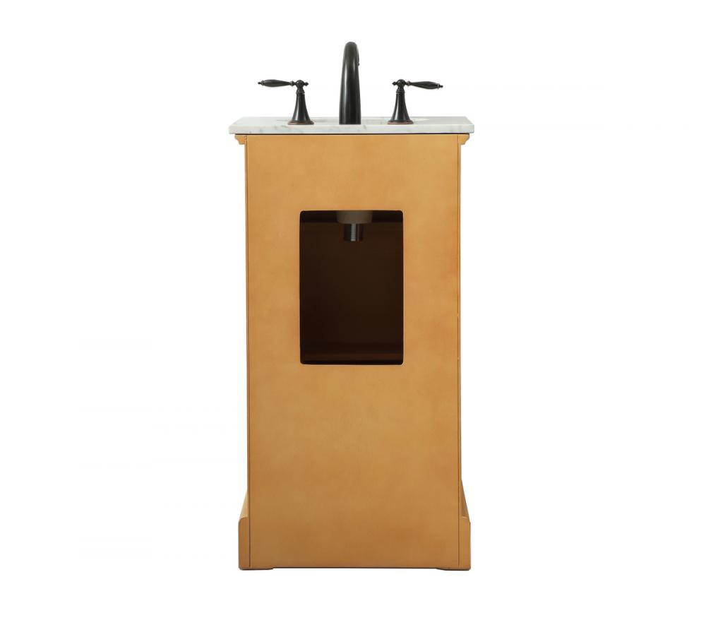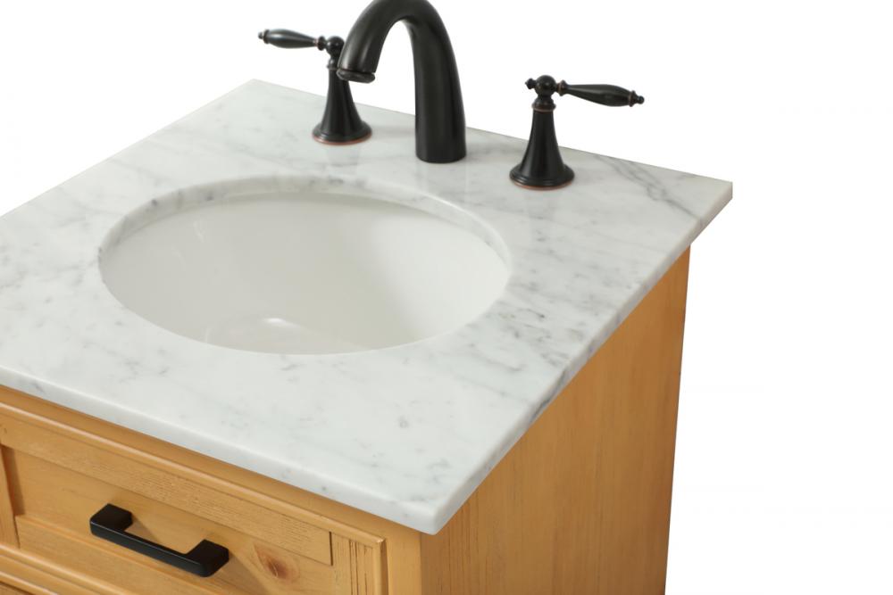 Comes with an undermount porcelain sink and a carrara white marble countertop